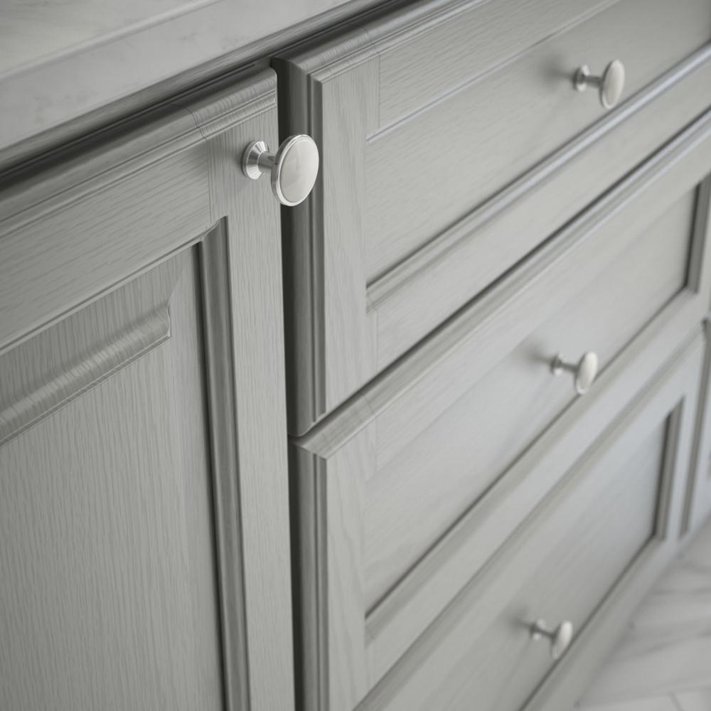 Add a polished and modern look to a room with the Liberty 1-1/4 in. Chrome Knob with White Ceramic Insert. Its clean, chrome and white appearance looks great on bathroom fixtures. Mounting hardware included for easy installation.