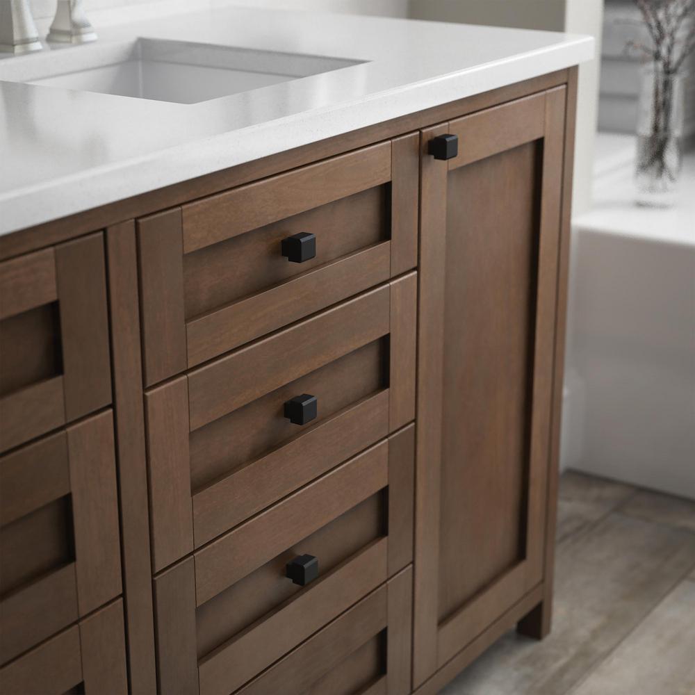 • For cabinets with pre-drilled holes you can easily swap out the hardware without the use of power tools