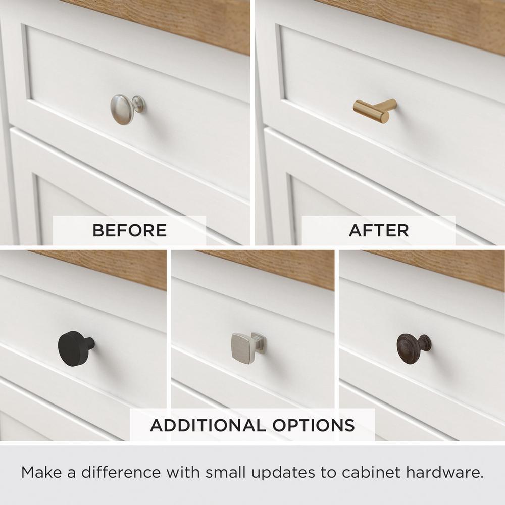 • For cabinets with pre-drilled holes you can easily swap out the hardware without the use of power tools