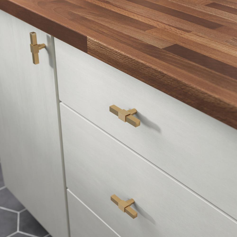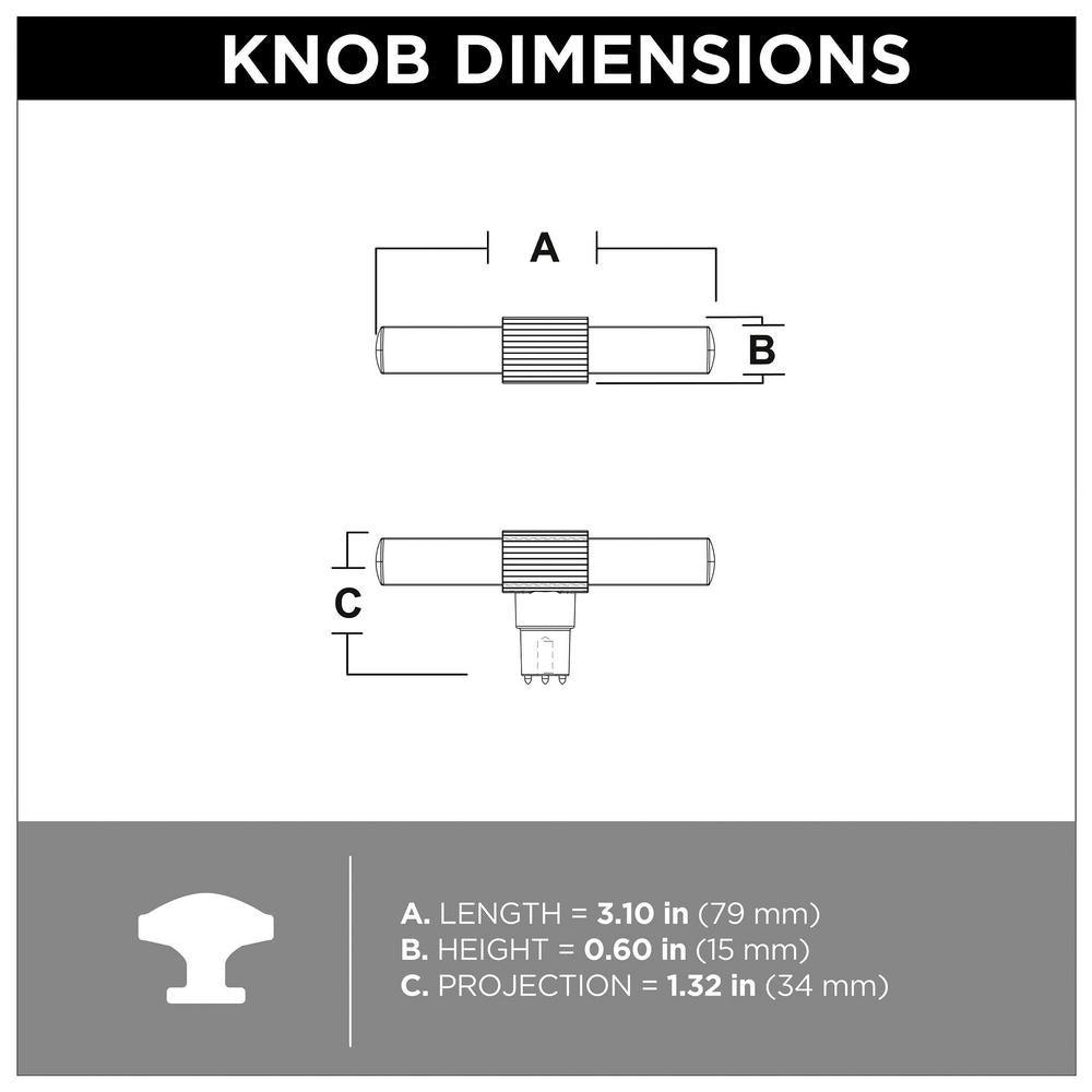 Fluted Square 3-1/8 in. (79 mm) Champagne Bronze Elongated T-Cabinet Knob