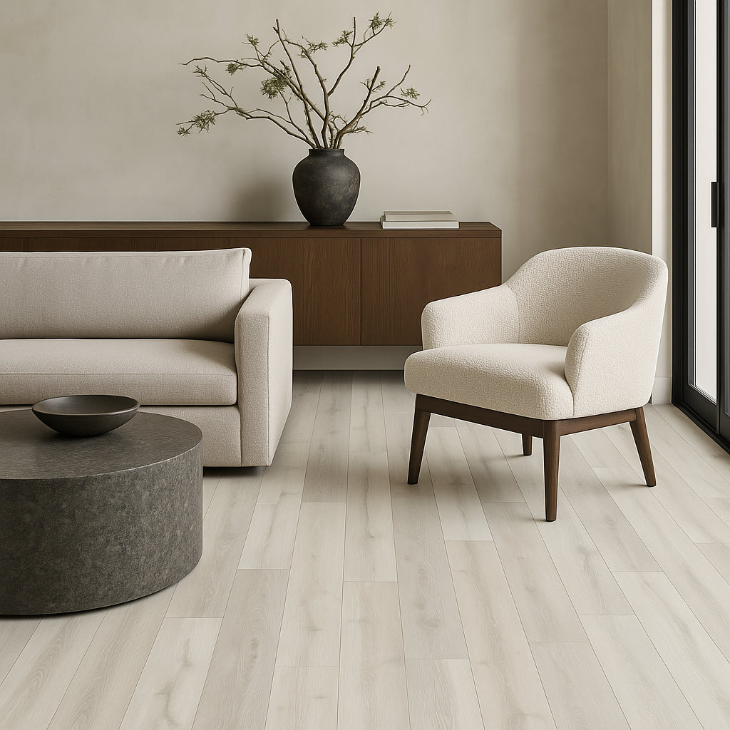 Cali Vinyl Pro flooring sample offers a durable, waterproof solution with a stylish White Aspen wood look. Perfect for high-traffic areas, it features a scratch-resistant wear layer and easy interlocking installation.