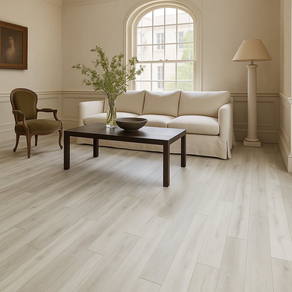 The Cali Vinyl Pro flooring sample in White Aspen transforms any room into a haven of sophistication. Its authentic wood grain texture and light shade create a serene ambiance, perfect for modern or rustic interiors. Pair it with minimalist furniture to highlight its natural beauty, or use it as a foundation for bold decor accents. This flooring is not just a surface—it's a statement of refined taste and enduring quality.