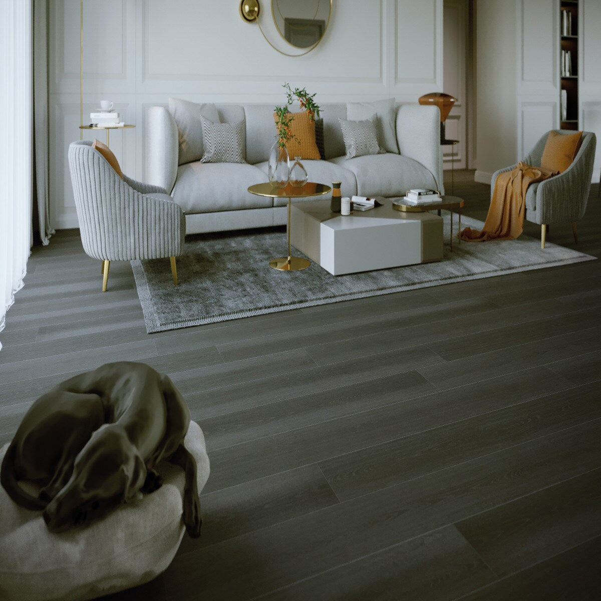 Oakspresso pours a rich, inky tone across the floor, instantly grounding a room with tailored sophistication. Its subtle grain and micro‑beveled edges create a refined rhythm that pairs beautifully with warm metals and plush neutrals. Try balancing the deep hue with creamy textiles and sculptural lighting for irresistible contrast. It’s a modern essential that makes everyday living feel luxuriously composed.