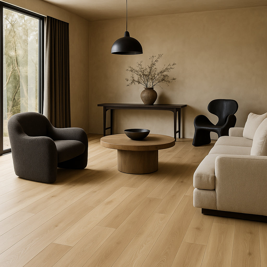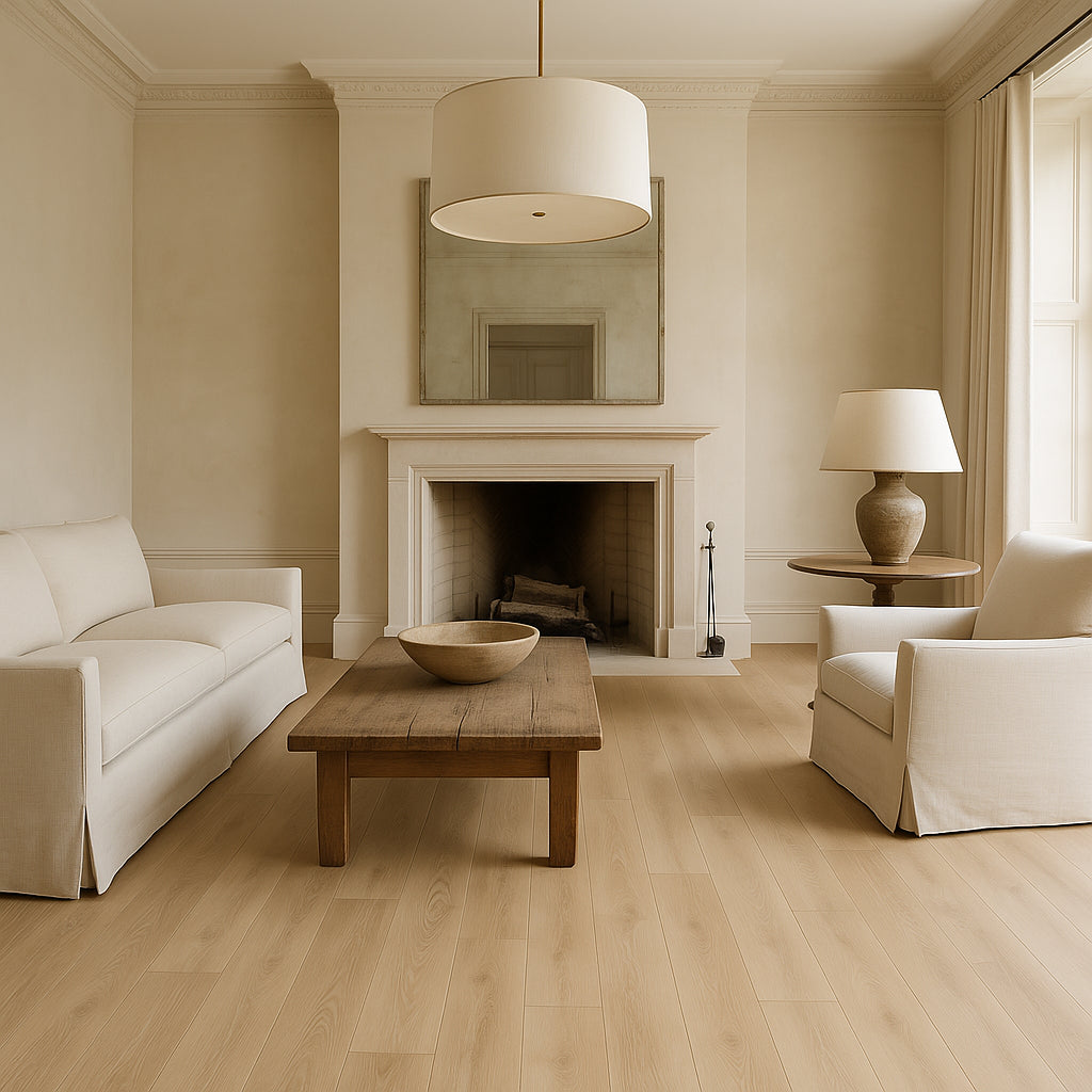 The CALI Laguna Sandstone Wash Vinyl Plank Flooring transforms any room into a haven of sophistication and warmth. Its light beige tones and authentic wood grain texture evoke the serene beauty of coastal living, making it a perfect choice for modern and traditional interiors alike. Pair it with crisp white cabinetry or rustic wooden furniture to create a harmonious and inviting atmosphere. This flooring is not just a design element; it's a foundation for luxurious living.