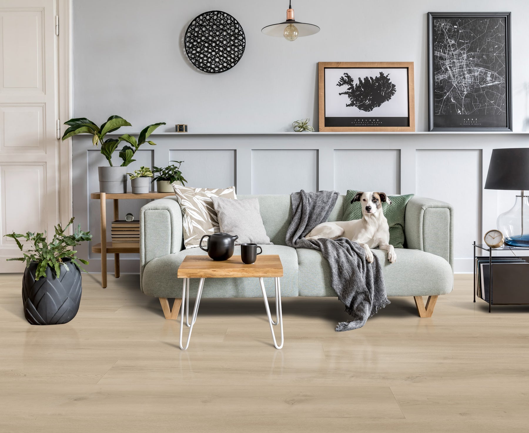 Coastline Cliff brings the airy ease of the shoreline indoors, with wide, elongated planks that visually stretch a space. The gentle grain and pale dune tones are refined yet relaxed, grounded by a matte, scratch-resistant finish. Pair it with sculptural neutrals and textured linens to heighten the serene, gallery-like feel. It’s a quietly luxurious foundation that makes everyday living feel fresh and effortless.
