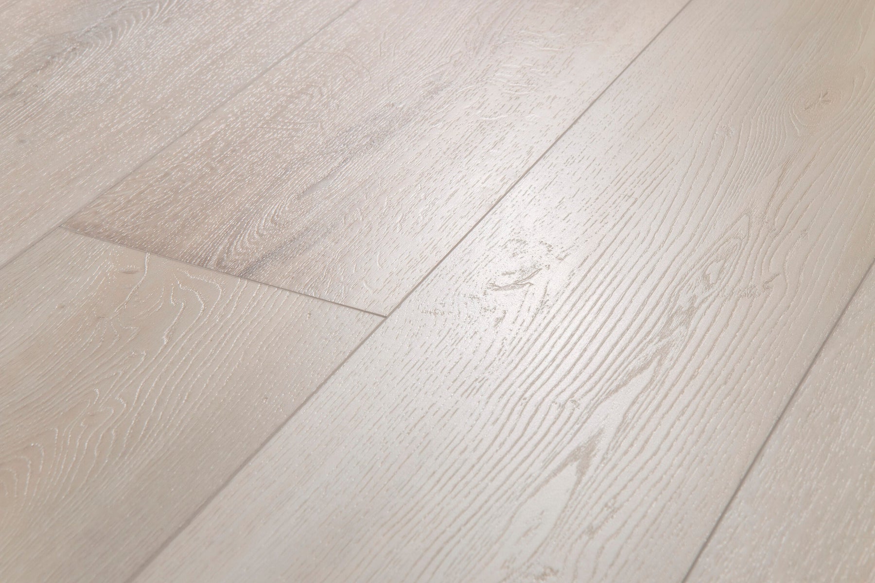 Salty Strand washes a room in sunlit, seaside calm, its pale grain whispering across extra‑long, extra‑wide planks. The painted bevel and tactile embossing read as refined oak, lending a tailored ease to modern spaces. Pair it with matte black fixtures and creamy linens for a crisp, gallery‑like backdrop that lets art and furnishings breathe. A chic essential, it delivers breezy elegance with everyday resilience.
