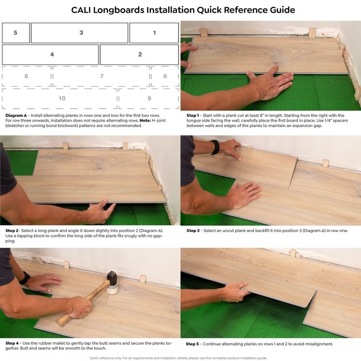 • For installation over concrete subfloors, it's recommended to use a moisture barrier like CALI Complete underlayment or 6mil plastic for floating installations. Glue-down installations require an adhesive with moisture/vapor barrier properties, ensuring optimal performance and durability.