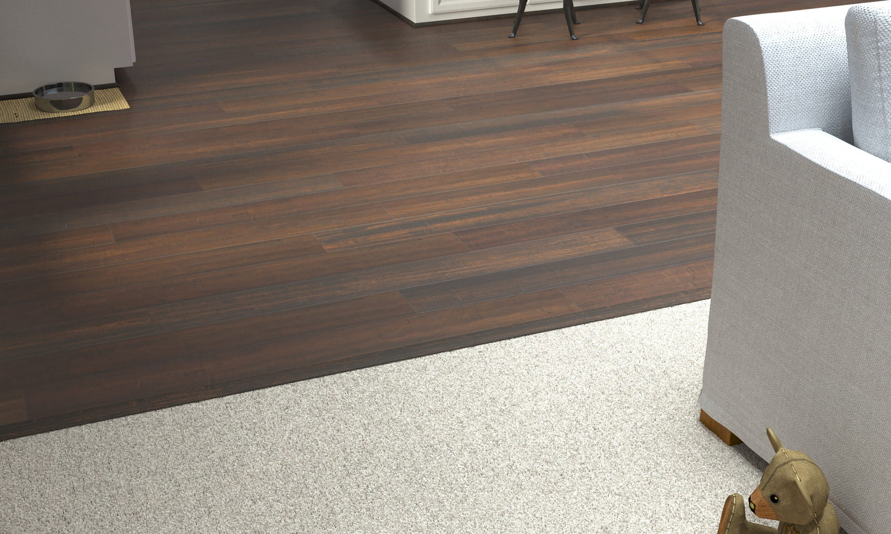 A: It is designed to color-match CALI Bordeaux bamboo hardwood and is used to transition between two same-height hard surfaces.