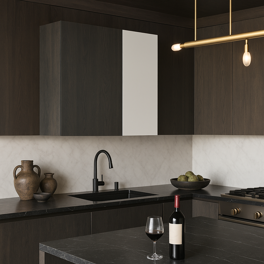 The Cambridge Carbon Marine Kitchen Cabinet transforms your space with its sleek, frameless design and rich, dark finish. Its soft-close doors and adjustable shelves offer both style and functionality, making it a perfect choice for contemporary kitchens. Pair it with light countertops for a striking contrast or integrate it into a minimalist design for a seamless look. This cabinet is a testament to modern sophistication and practical luxury.