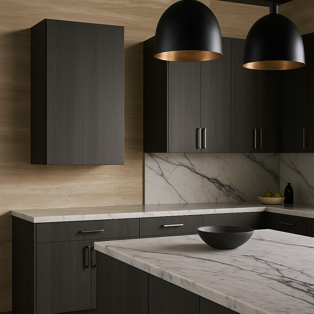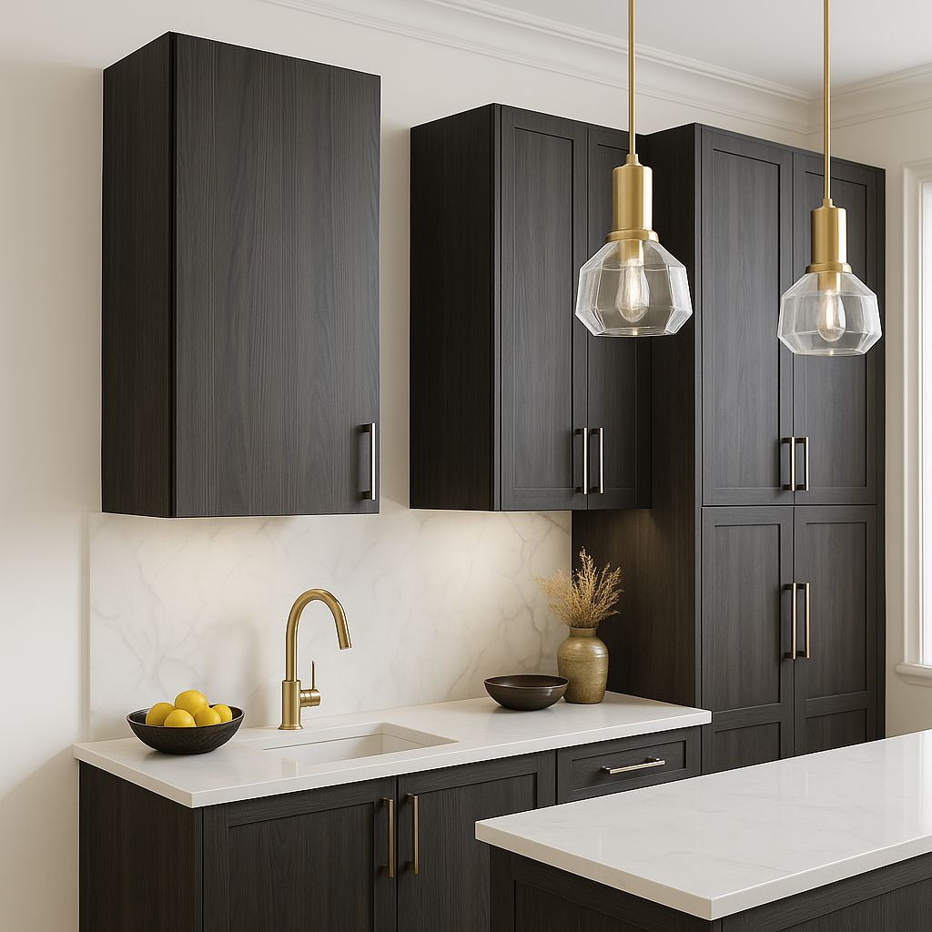 The Cambridge Carbon Marine Wall Kitchen Cabinet combines modern style with functionality, featuring quick assembly technology and a durable laminate finish. Perfect for contemporary kitchens.