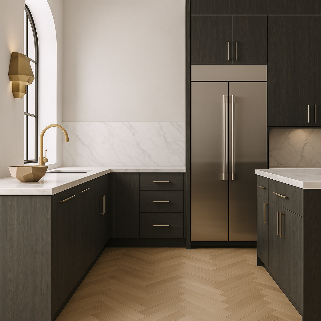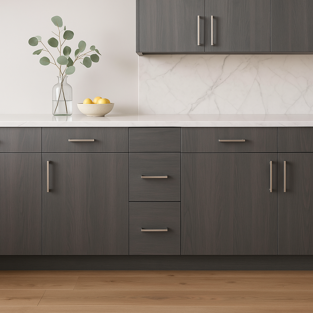 The Cambridge Carbon Marine Vanity Base Cabinet transforms your kitchen with its sleek, frameless design and rich, dark finish. Its compact size and soft-close drawers make it a functional yet stylish addition to any space. Pair it with light countertops for a striking contrast or integrate it into a monochromatic scheme for a seamless look. This cabinet is the epitome of modern sophistication, perfect for creating a luxurious and inviting kitchen environment.