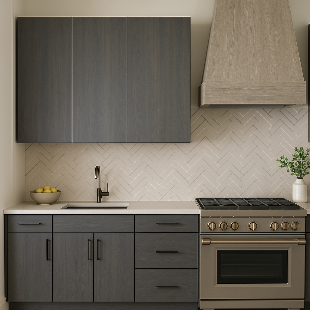 The Cambridge Carbon Marine Wall Kitchen Cabinet combines modern style with functionality, featuring quick assembly technology and a durable laminate finish.