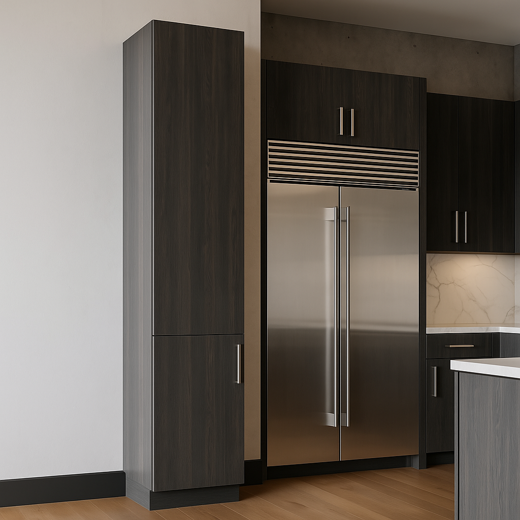 The Cambridge Carbon Marine Pantry Cabinet is a masterpiece of modern design, blending sleek lines with a rich, dark finish that transforms any kitchen into a sophisticated space. Its frameless construction and soft-close doors exude luxury, while the adjustable shelves offer practical functionality. Pair it with stainless steel appliances and minimalist decor for a truly contemporary aesthetic. This cabinet is not just storage—it's a statement of style and refinement.