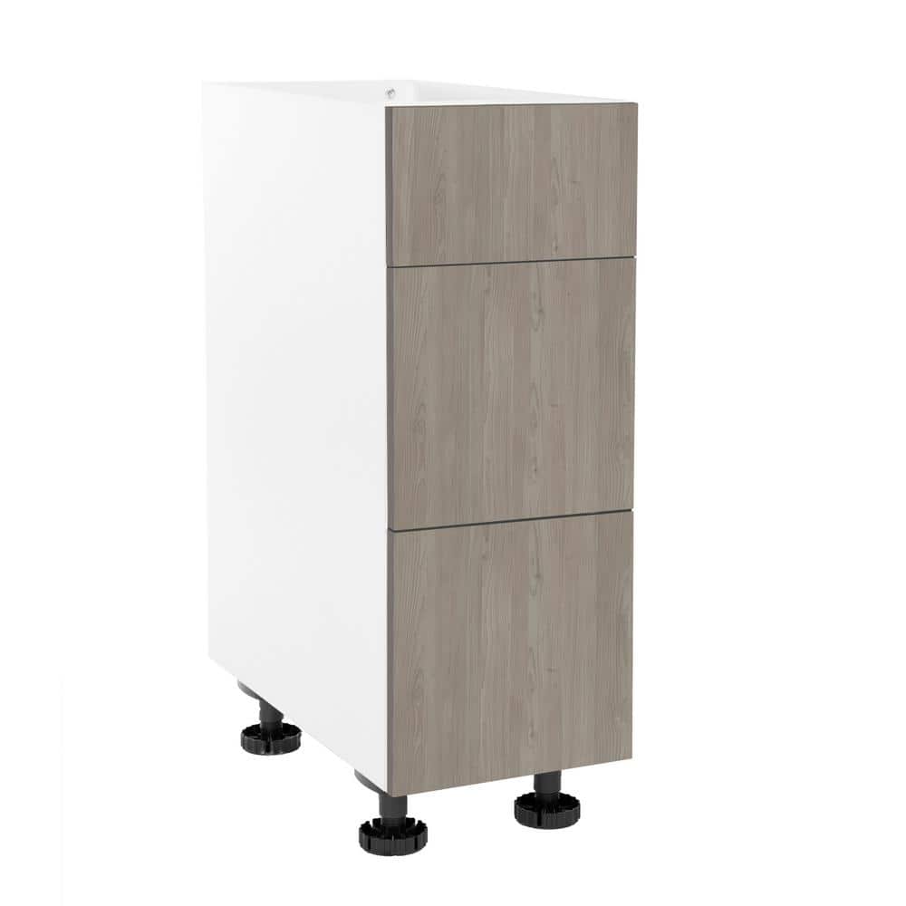 Elevate your kitchen's aesthetic with the Cambridge Grey Nordic 3-Drawer Kitchen Cabinet. This modern base cabinet boasts a quick, tool-free assembly, courtesy of Threespine technology, ideally suited for pros and DIY enthusiasts alike. Crafted for seamless style and function, its soft-close drawers and moisture-resistant finish promise both elegance and reliability.