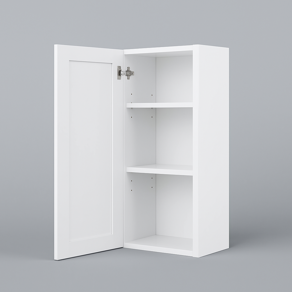 The Cambridge Radiance kitchen cabinet combines modern design with practical features, including adjustable shelves and soft-close doors. Its high-gloss white finish and frameless construction make it a stylish addition to any kitchen.