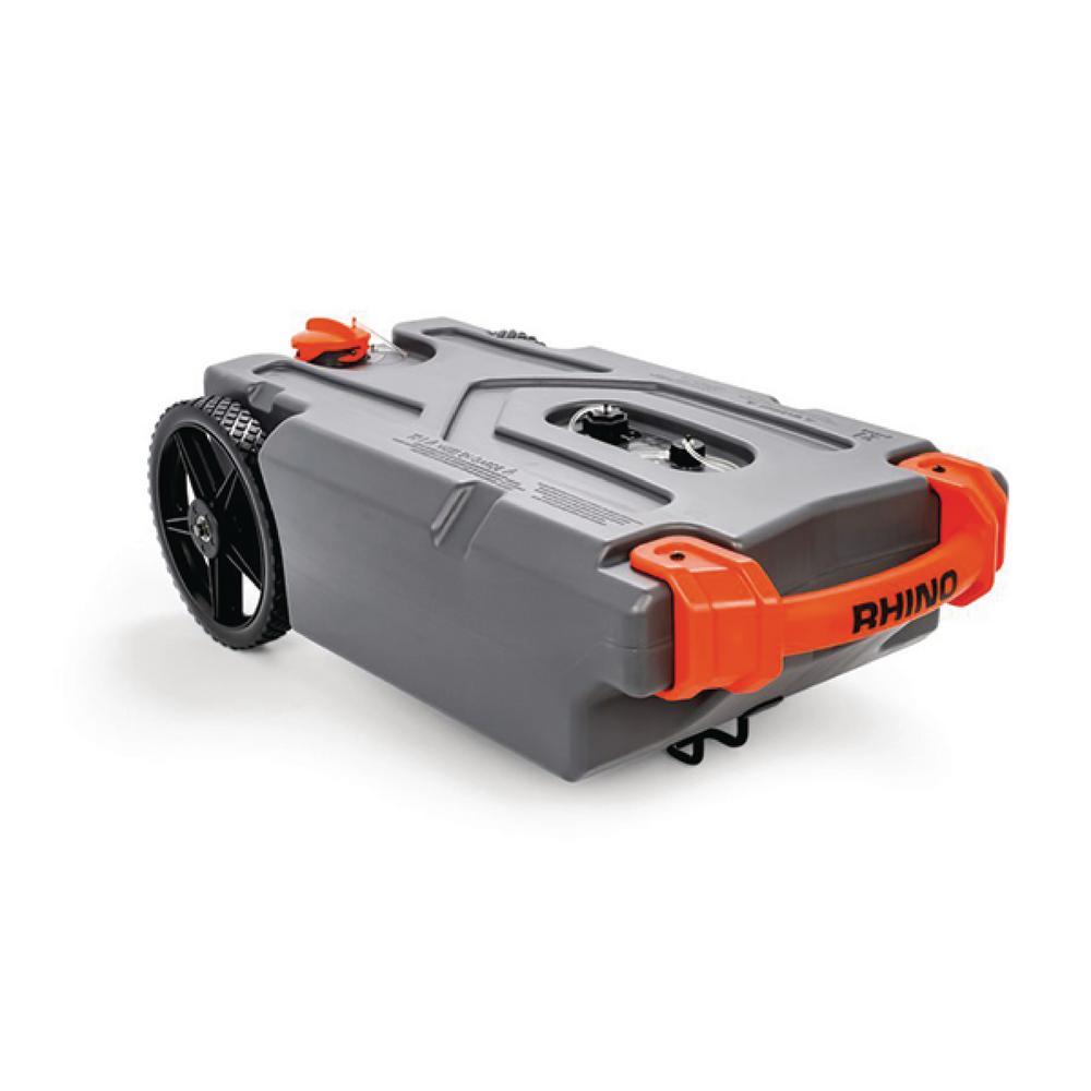 - Large, heavy-duty, no-flat wheels with bearings make transport smooth and easy and removable steel tow adapter allows you to easily roll the tote tank like a suitcase or tow it slowly behind a golf cart or truck