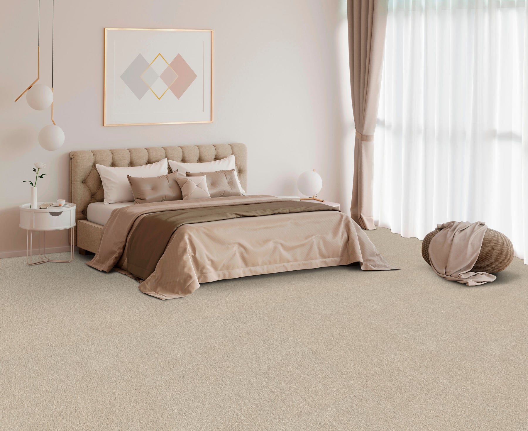 Plush, high-pile STAINMASTER Essentials carpet in a bleached off‑white tone brings softness and durability to bedrooms and living areas. Made of resilient polyester with stain and soil resistance, it’s designed to look new longer while delivering everyday comfort.