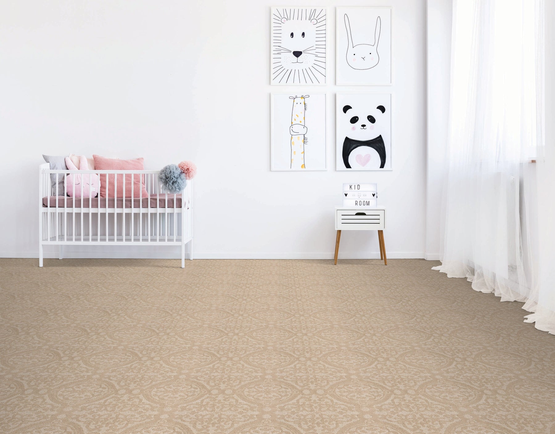 The So Happy Soft Words carpet whispers elegance with its delicate, scroll-like motif, instantly uplifting a room with refined texture. Its solution-dyed fibers deliver a plush hand while standing up to real life, making beauty beautifully practical. Style it with airy neutrals and sculptural accents to let the pattern quietly anchor the space. A chic foundation that feels indulgent and lives effortlessly—true modern luxury underfoot.
