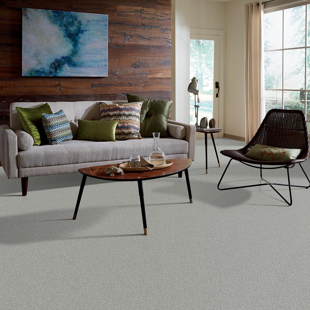 Durable STAINMASTER PetProtect textured carpet designed for busy homes with pets. The low-pile nylon construction resists stains, releases pet hair easily during vacuuming, and pairs with STAINMASTER cushion to help reduce pet odors.