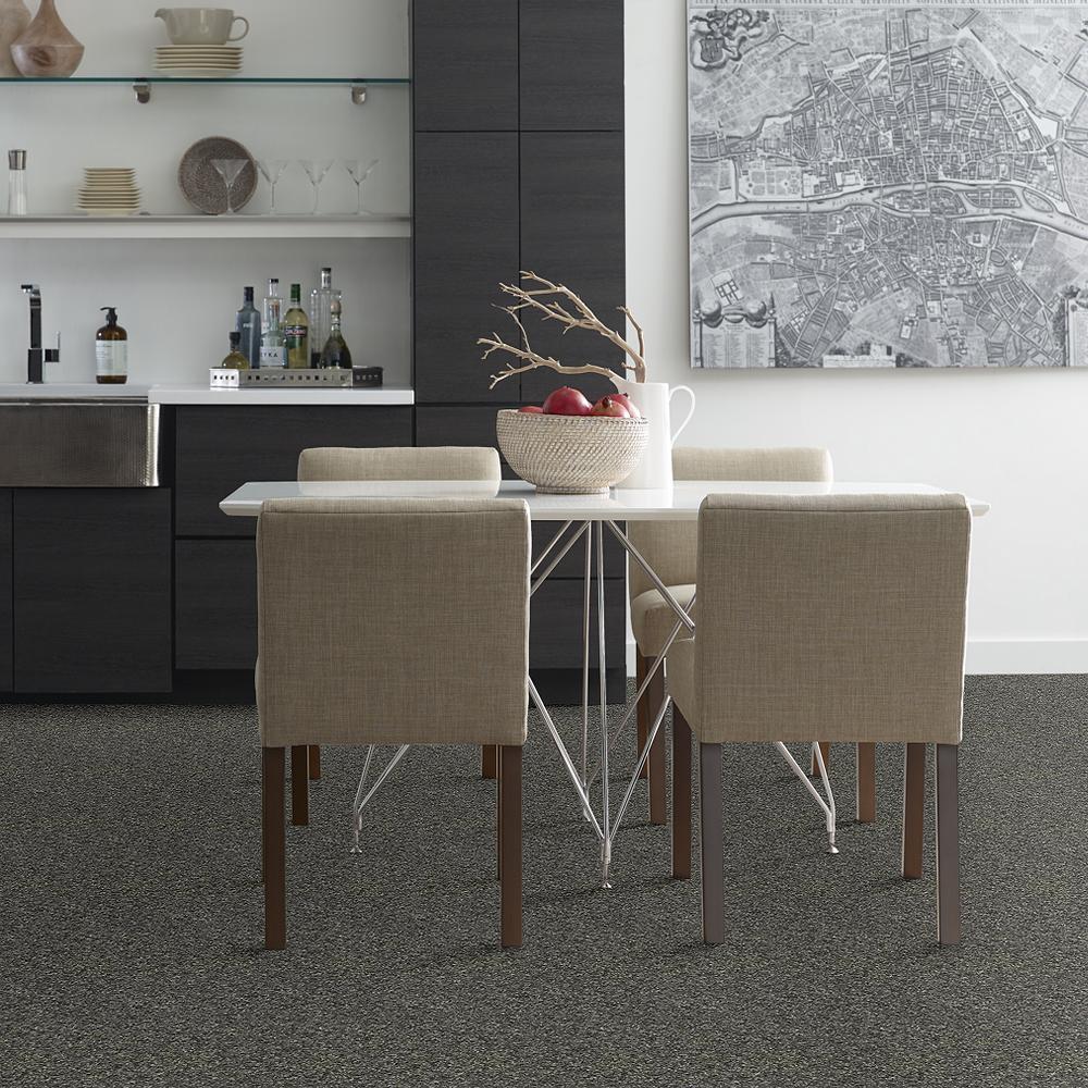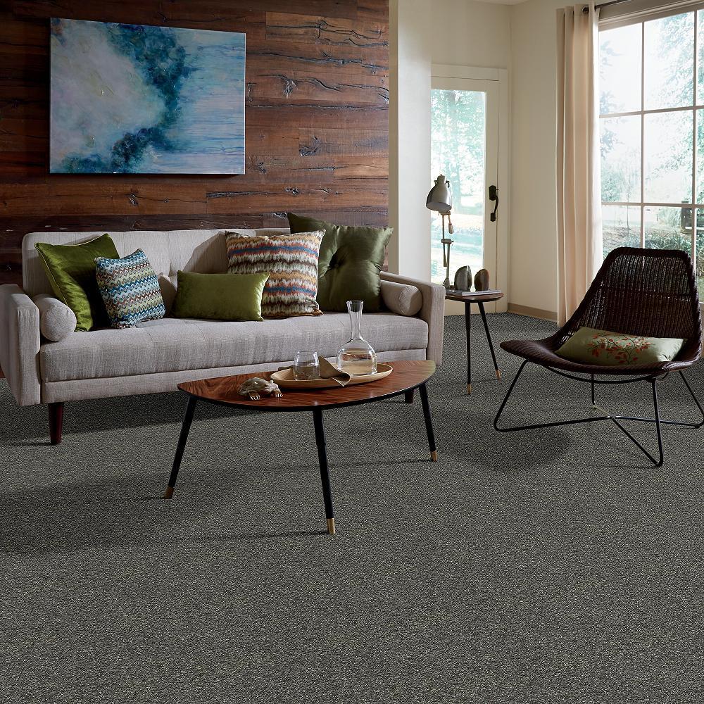 This carpet grounds a room with a refined, textural charcoal that reads both modern and timeless. The subtle heathering adds depth, letting bold furnishings and art take center stage. Try it beneath sculptural seating and warm wood accents for a collected, gallery-like vibe. It’s an elegant essential that marries luxe comfort with everyday practicality.