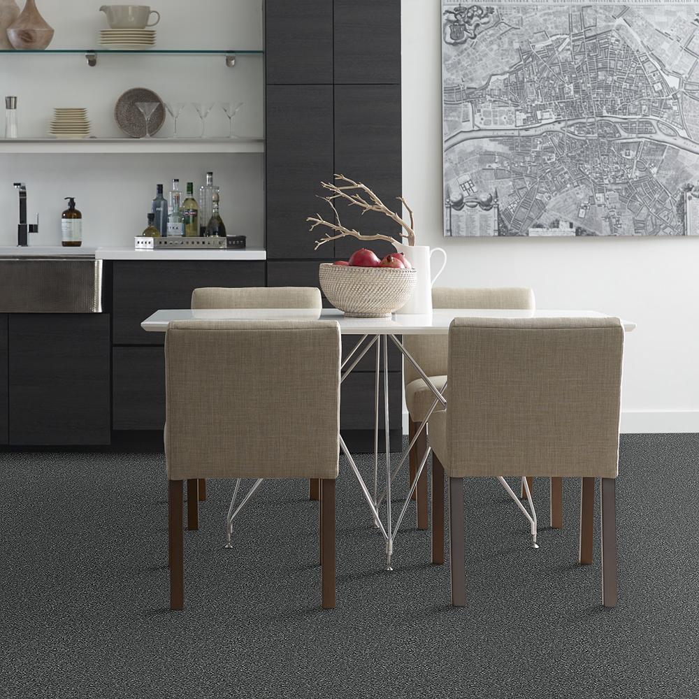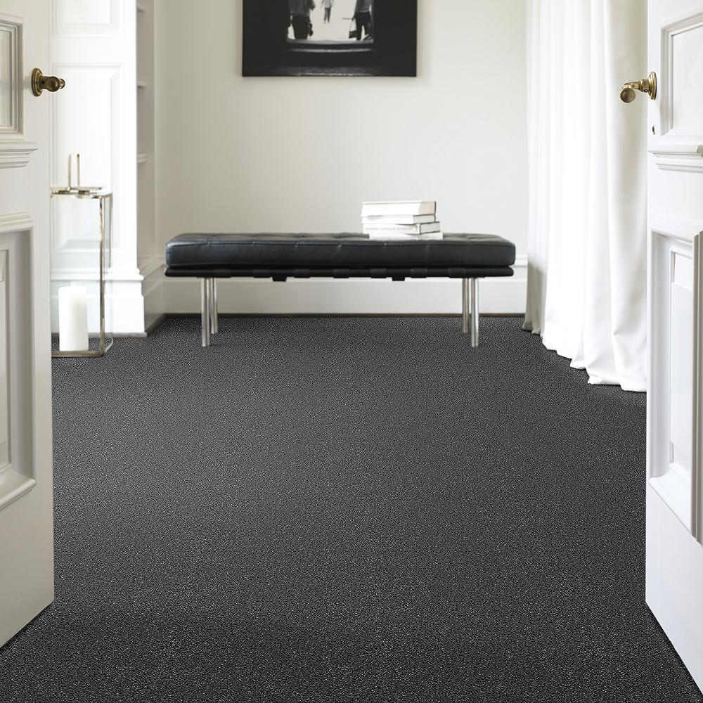 Durable textured nylon carpet designed for busy, pet-friendly homes. Features superior stain resistance and easy pet-hair release, with a medium pile for soft comfort and versatile gray tone.