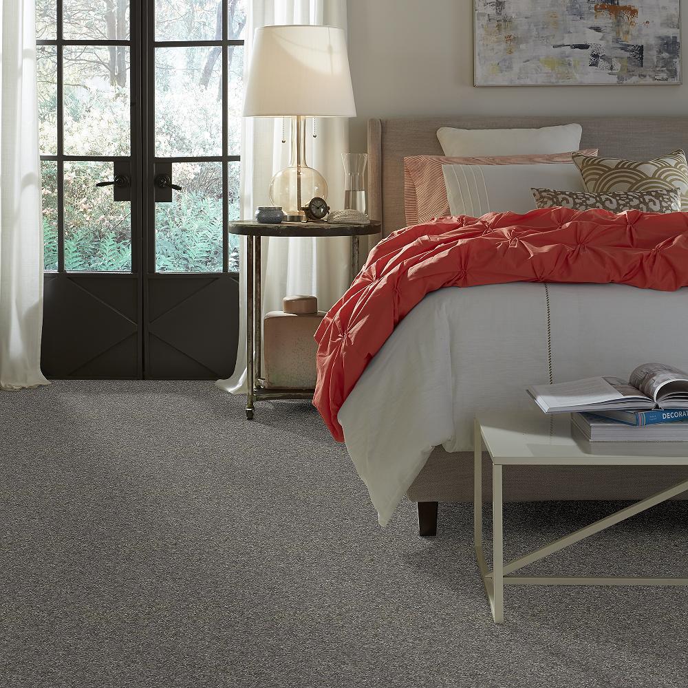 Durable STAINMASTER PetProtect textured carpet designed for busy, pet-friendly homes. The Schnauzer gray tone offers a soft, medium-pile feel with exceptional stain resistance and easy pet-hair release for simpler maintenance.