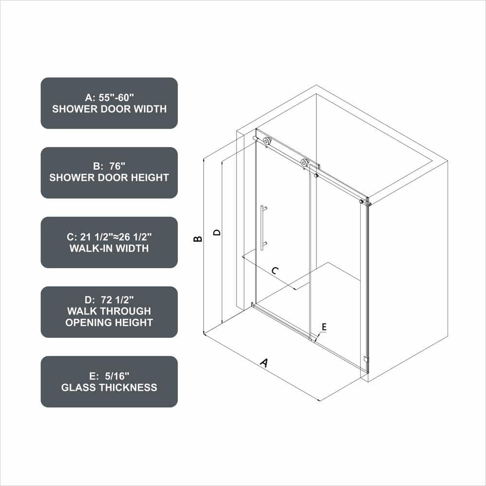 CASAINC 60 in. W x 76 in. H Frameless Shower Door Stainless Steel in Brushed Nickel with Adjustable Soft Closing Function