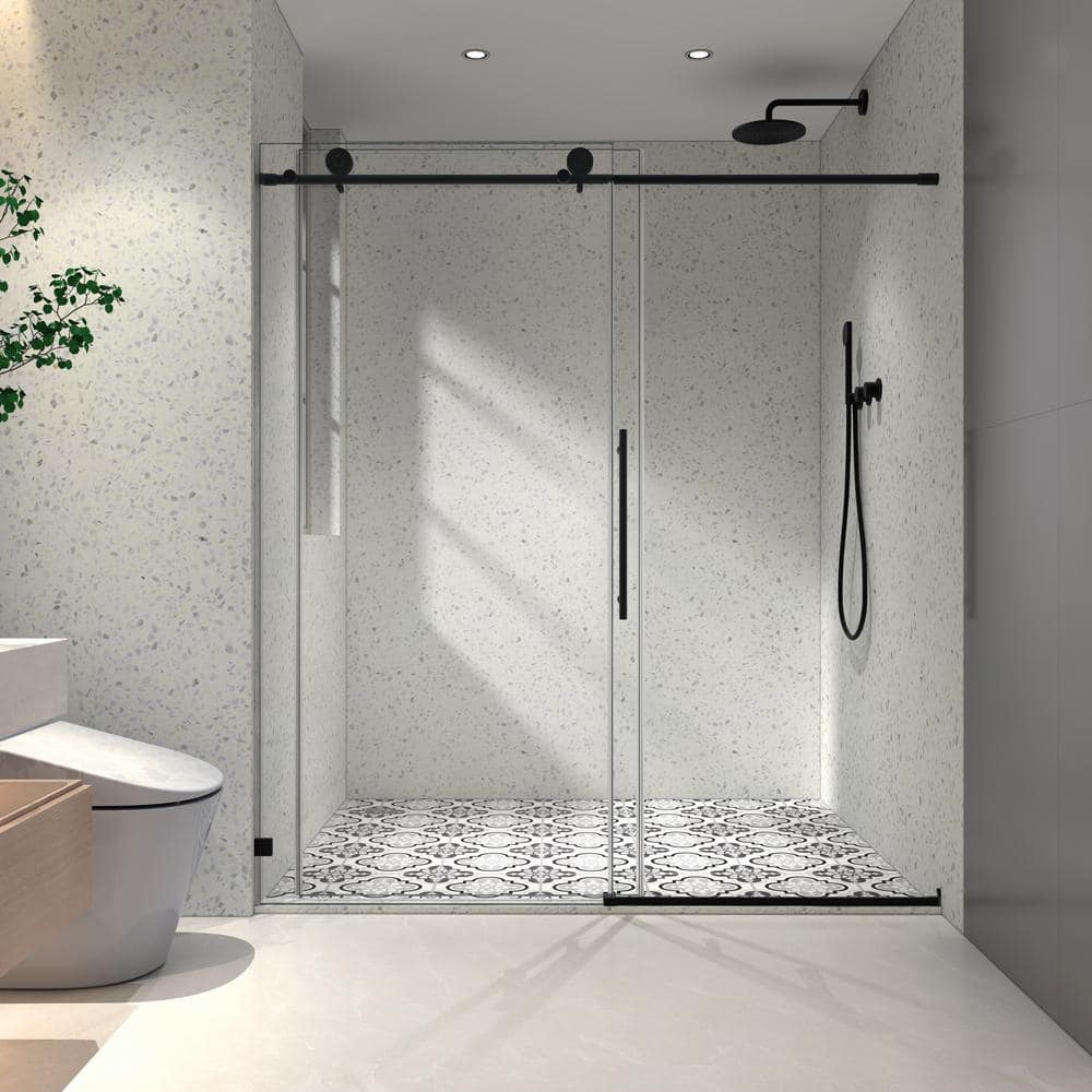 Enhance your bathroom with the CASAINC 60-in Frameless Shower Door in Brushed Nickel, designed for elegance and durability. Featuring 5/16-inch tempered glass and an adjustable soft-closing mechanism, this door offers both beauty and functionality. With easy-to-clean nano-coated glass and robust stainless steel hardware, it's an excellent choice for a modern, sophisticated bathroom.