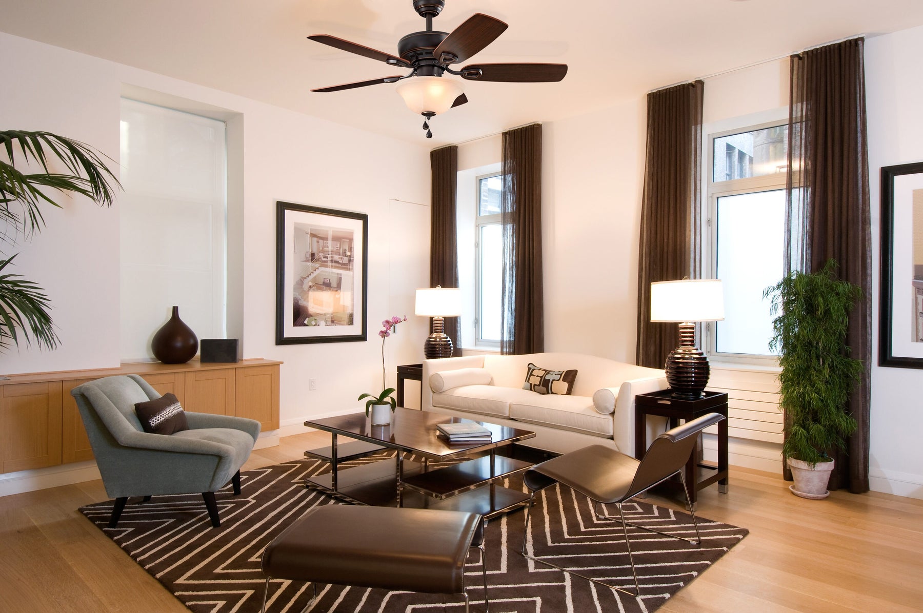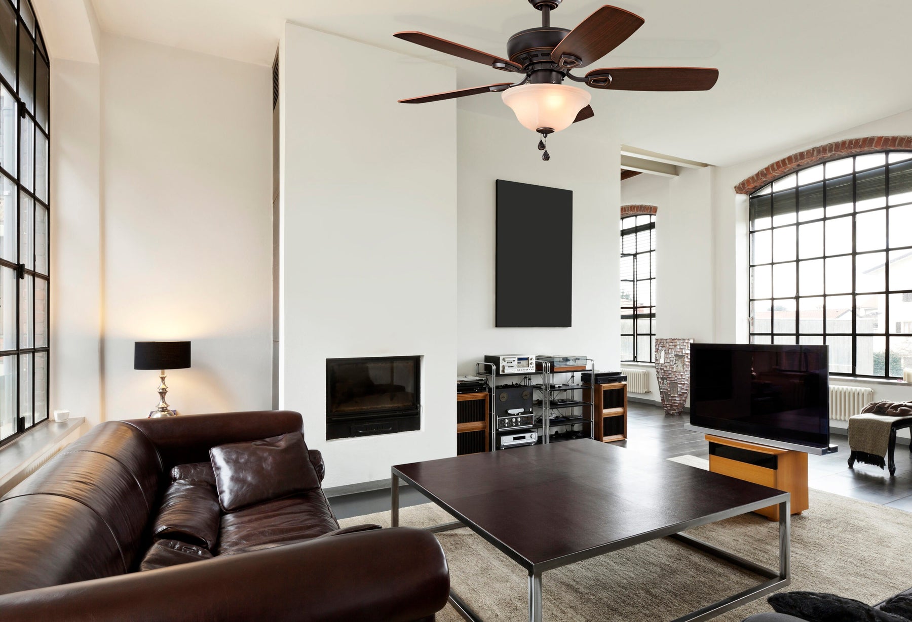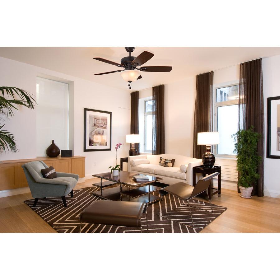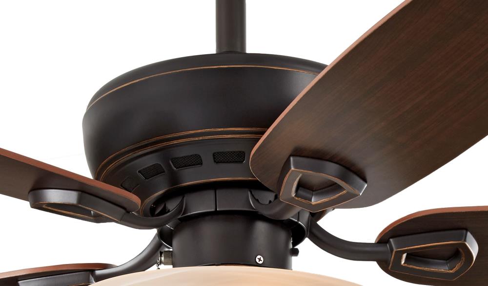 • Warm, Reversible Blades: Toffee/cocoa finishes complement transitional décor