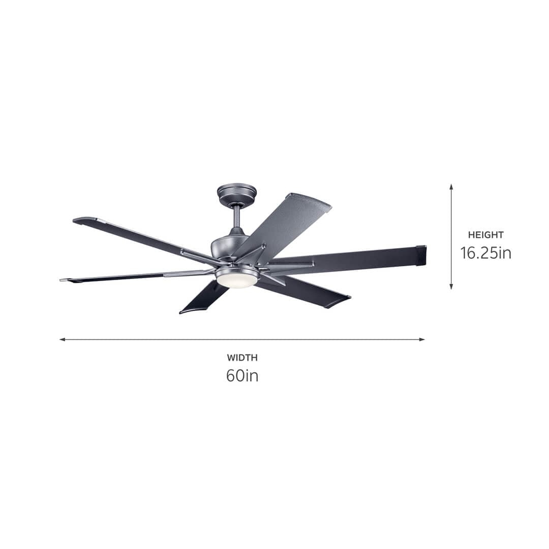 Kichler Szeplo Patio 60-in Weathered Steel Powder Coat Indoor/Outdoor Ceiling Fan with Light (6-Blade)