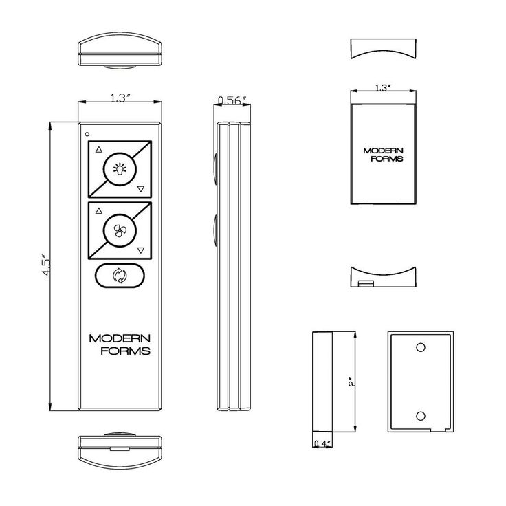 Battery Operated RF remote for fan control. RF remote is optional - each Modern Forms Ceiling Fan can be controlled through the free Modern Forms App available in the Google Play or App Store. RF operated wireless control. Battery operated (CR 2032 battery included), lasts up to 5-years with normal use. Luminaire on/off control and 0-100% brightness control with fan on/off button and 6 speed fan control. Includes Winter/Summer mode switch to reverse fan for warm or cool air flow. Includes a magnetic cradle with easy installation for wall mounting.