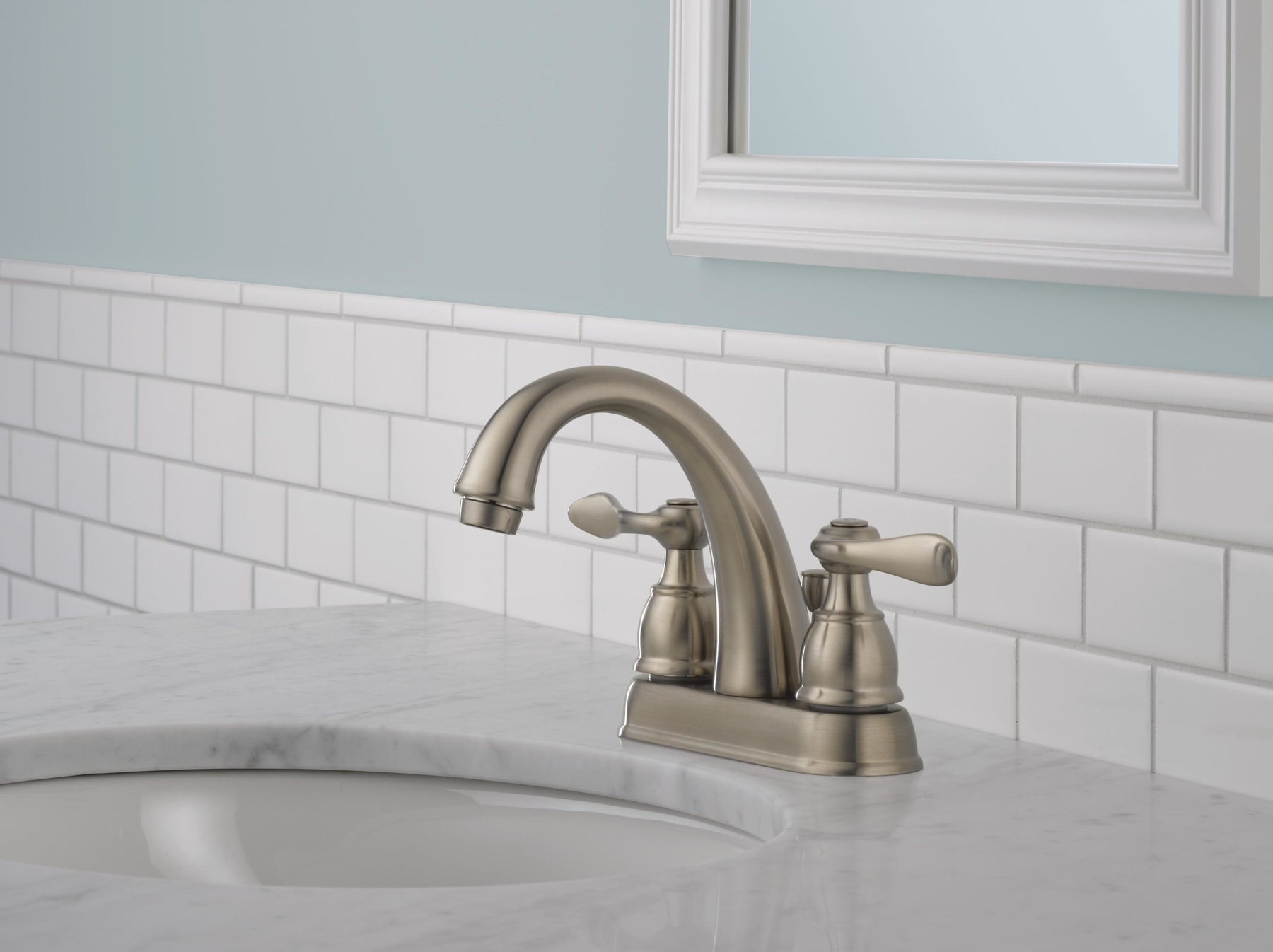 This Delta Windemere bathroom faucet brings classic style and efficient performance with a high-arc spout and WaterSense-certified 1.2 GPM flow. Designed for 3-hole, 4-inch centerset installations, it includes a matching drain assembly for a seamless look.