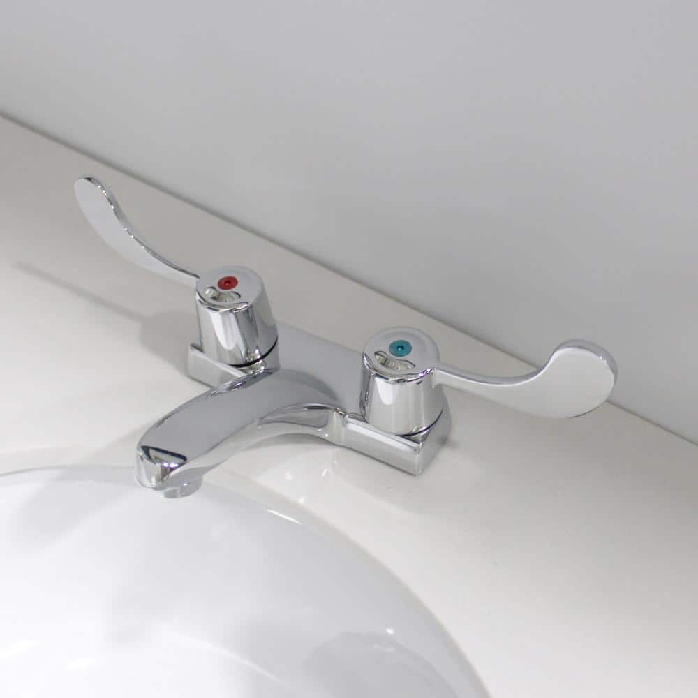Elevate your commercial space with the Speakman Commander Centerset Faucet. Designed with precision, this fixture features vandal-resistant wrist blade handles and durable, lead-free brass construction. Finished in polished chrome, it promises endurance against tarnishing and corrosion, ensuring lasting performance.
