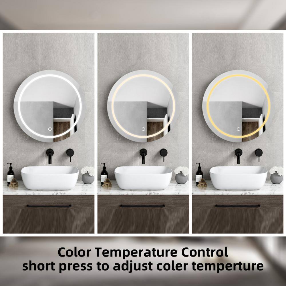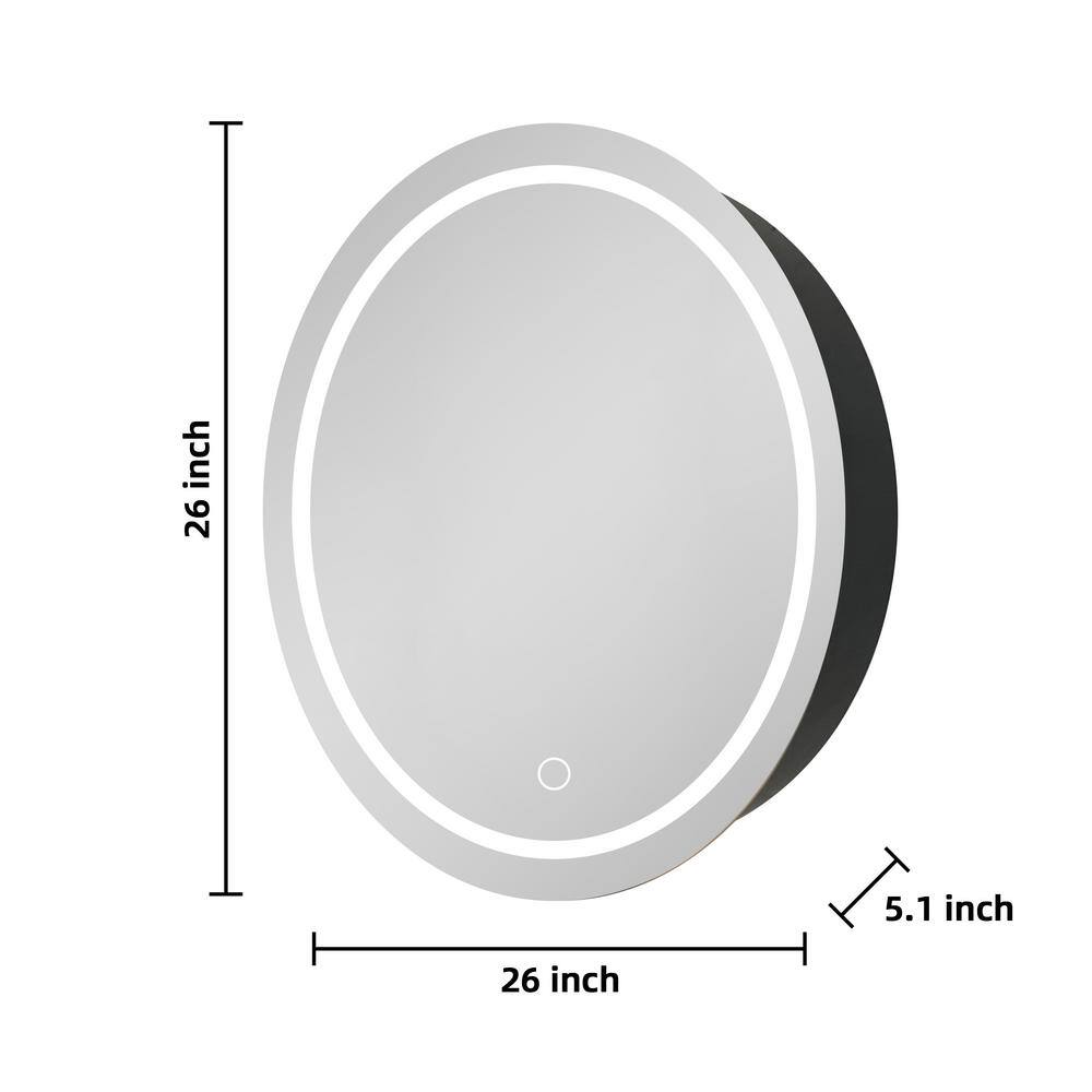 Cesicia 26 in. W x 26 in. H Round Iron Wall Mount Medicine Cabinet with Mirror 3 Colors LED Anti-fog Function