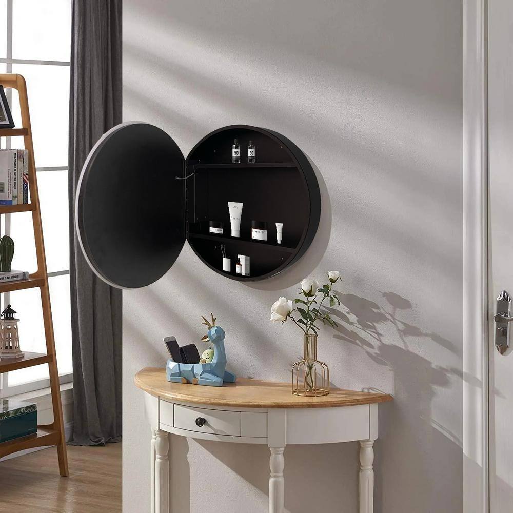 Illuminate and organize your bathroom today with the Cesicia Round Iron LED Medicine Cabinet for a blend of style and function.