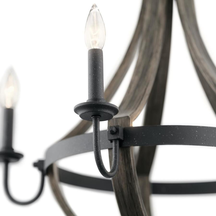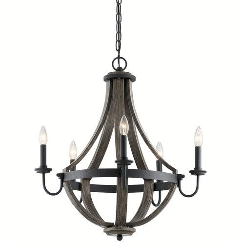 Kichler Merlot 5-Light Distressed Black and Wood Farmhouse Chandelier, 25 in Dia