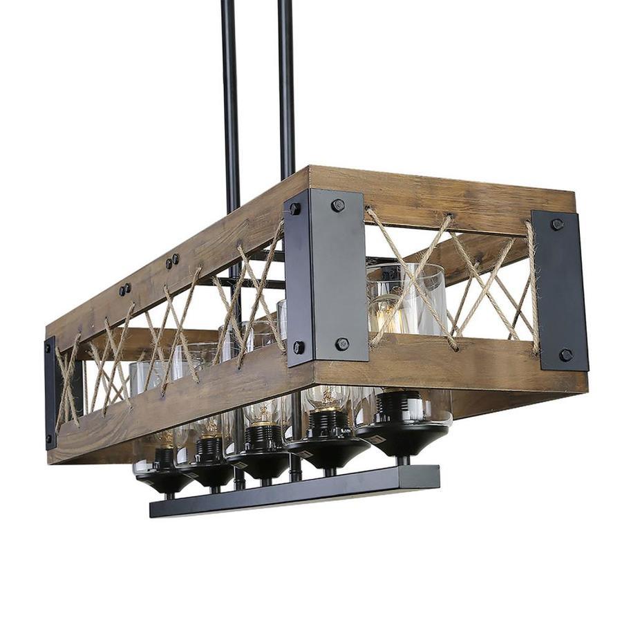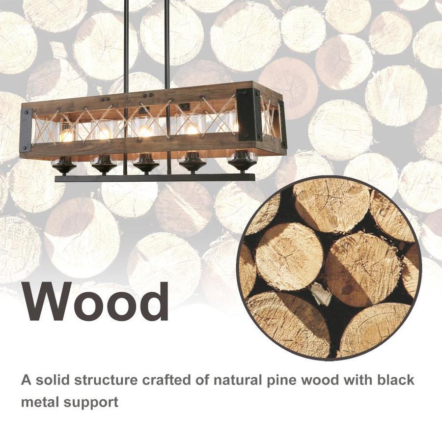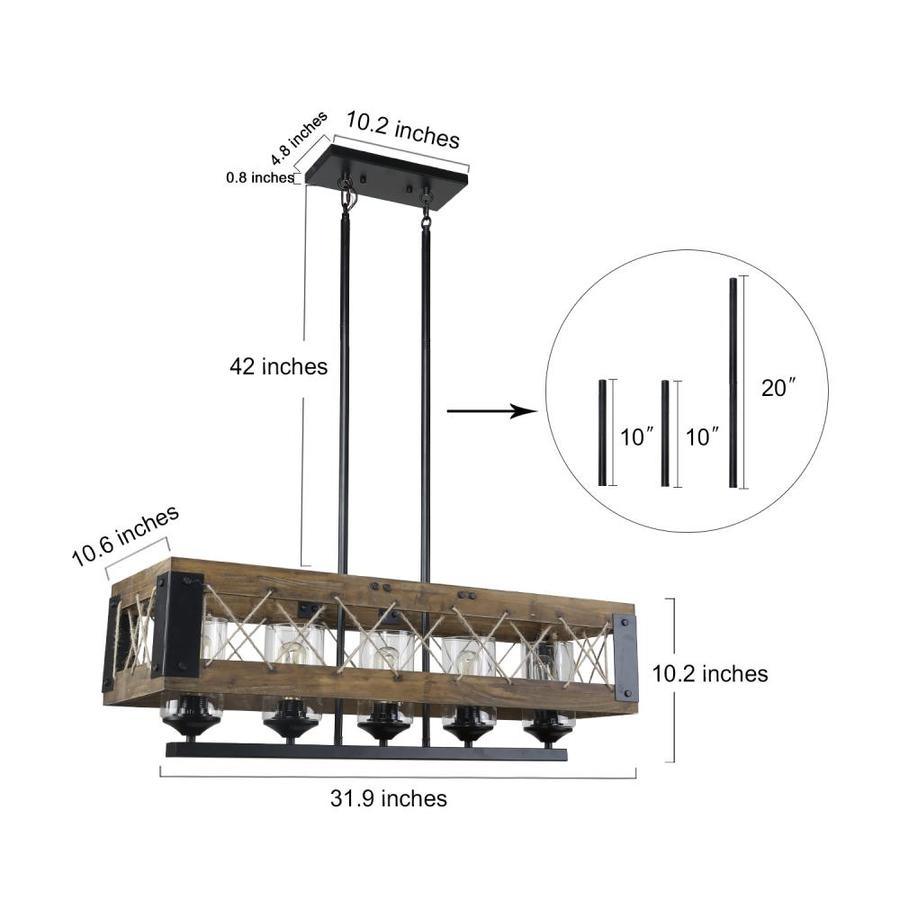 This pool table light also taken as the kitchen island pendant lighting, features five glass cylinder with nature wood frame and wire mesh for classic look,we have complete look 2837369 An accent modern farmhouse chandelier lighting designed to work on all ceilings including flat, sloped, slanted or vaulted ceiling Adjustable pendant lighting fixture dimensions: 32-in W x 10.5-in D x 10-in H Canopy dimensions: 10.25-in W x 4.75-in D x 0.785-in H and glass shade size: φ3.5 inches x 5.5 inches This kitchen island pendant lighting requires five 60-watt medium base bulbs (not included) Capable of being dimmed when used with a dimmable bulb and compatible dimmer switch Adjustable hanging height from 13 to 55-in, ideal for rooms with high or low ceilings Great for farmhouse, modern, country,rustic country style, widely used for your dining areas, staircase, entryway,foyer, kitchen and living and bedroom, perfect match with different style furniture of your home UL listed hardwired lamp,easy installation, detailed instructions and all mounting hardware are included