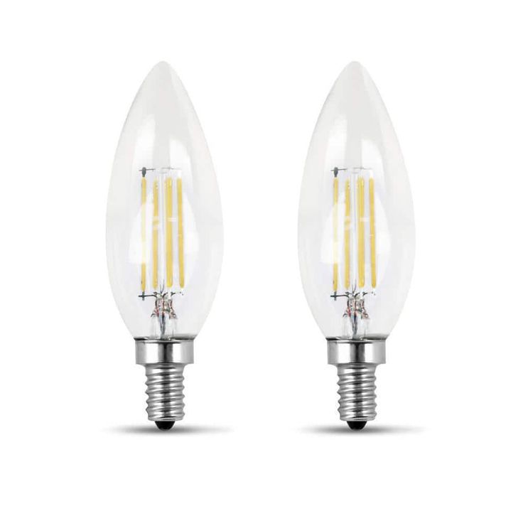 Feit Electric 60-Watt Equivalent B10 Candelabra Dimmable Filament CEC Clear Glass Chandelier LED Light Bulb, Soft White (2-Pack)