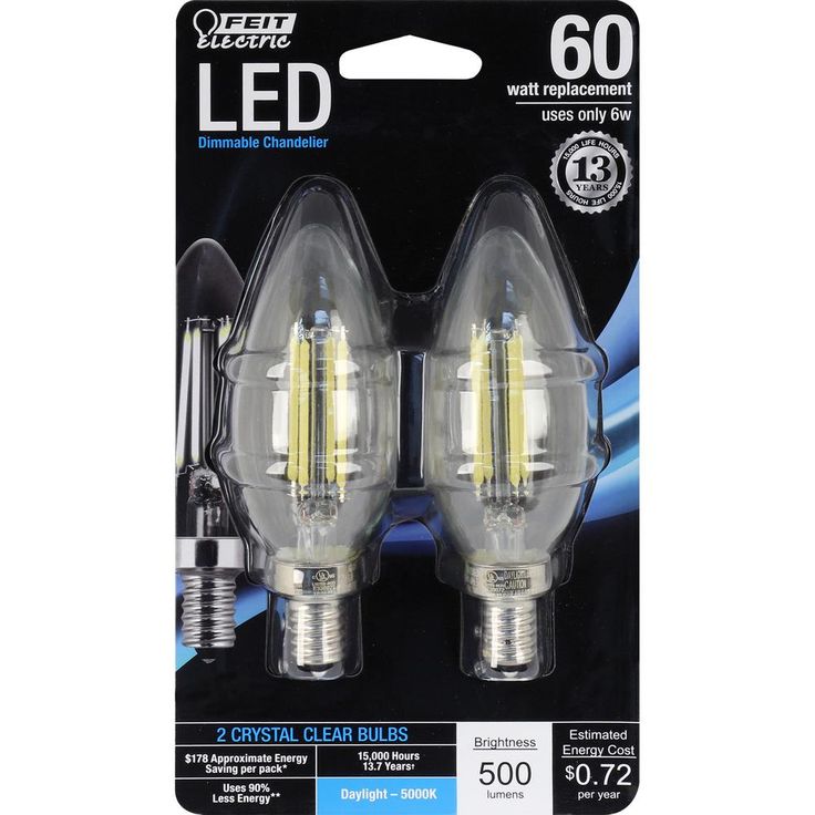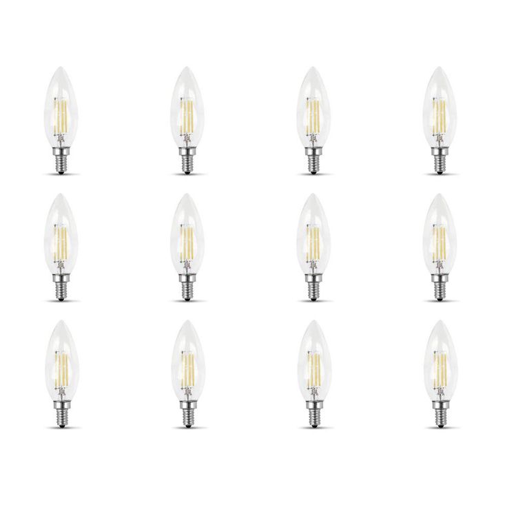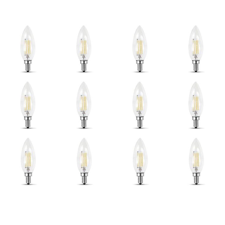 Feit Electric 60-Watt Equivalent B10 Candelabra Dimmable Filament Clear Glass Chandelier LED Light Bulb, Daylight (12-Pack)