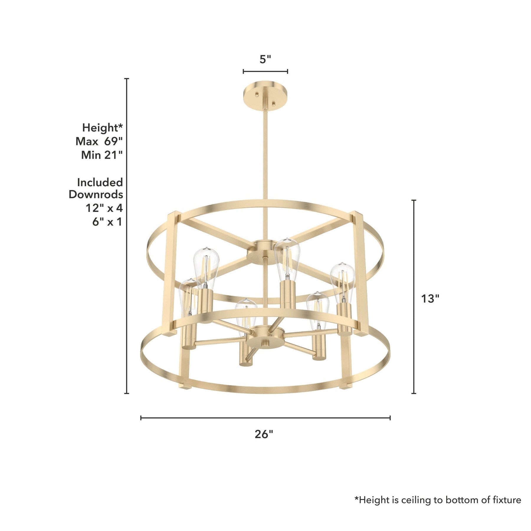 Hunter Astwood 6-Light Matte Gold Modern/Contemporary Led Bare Bulb Chandelier