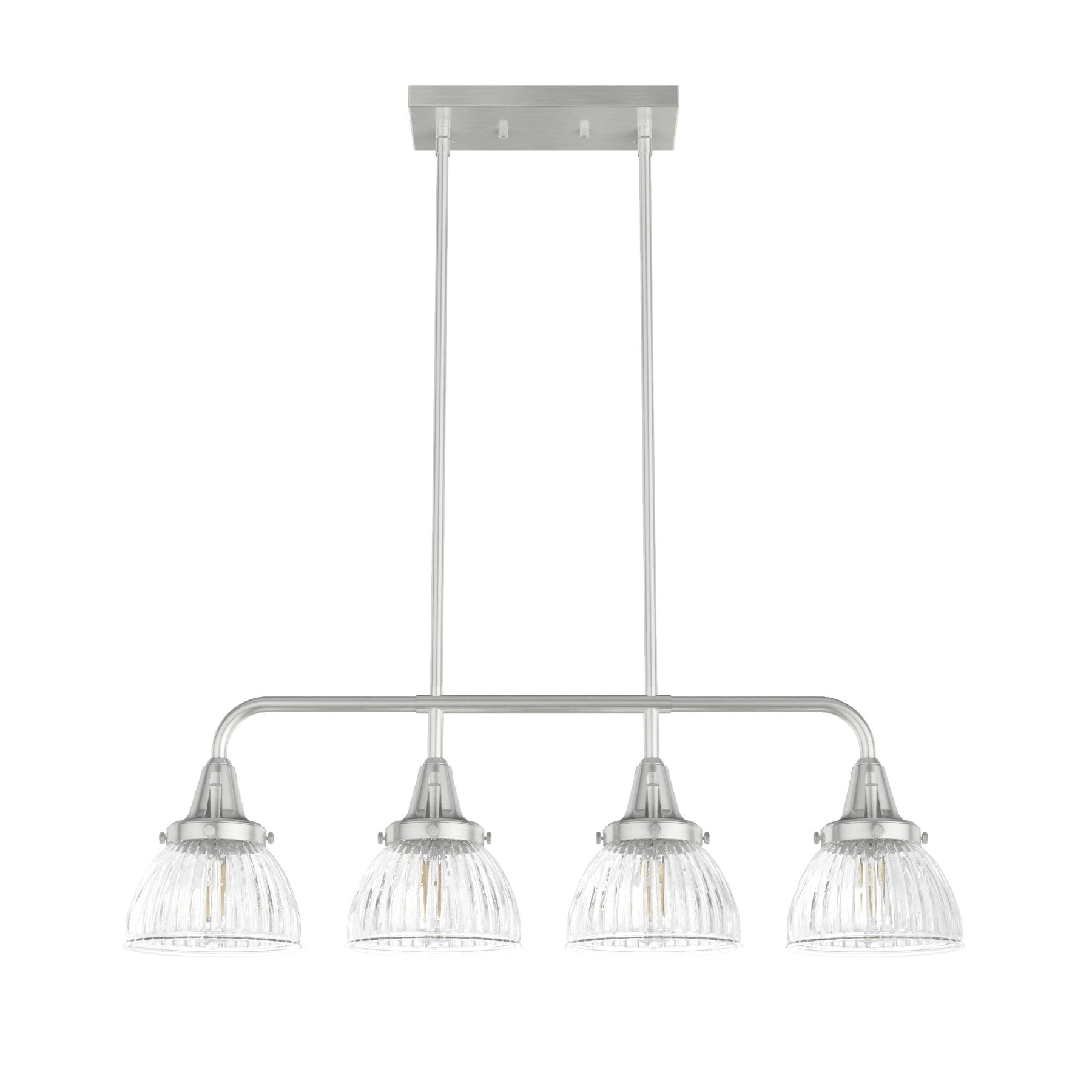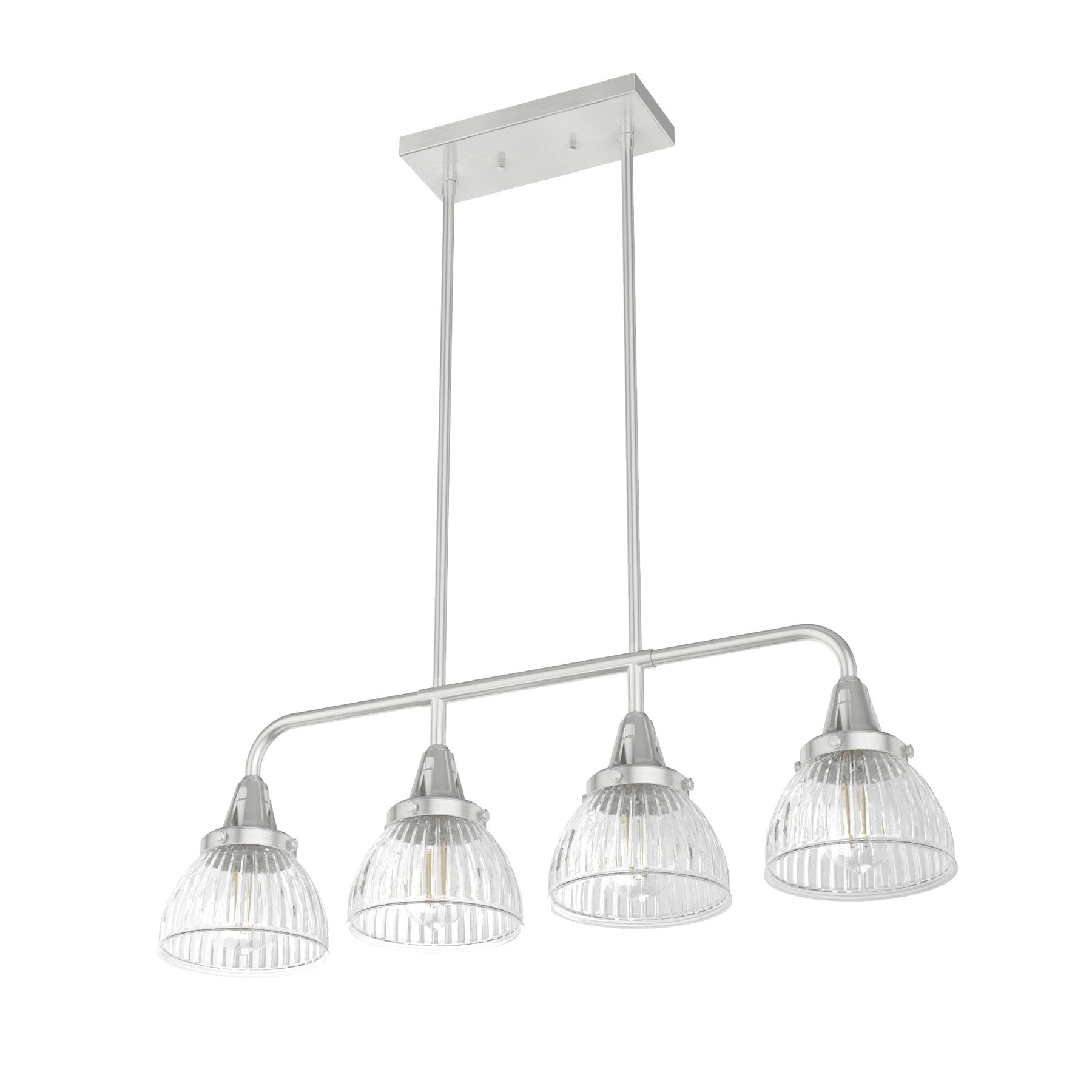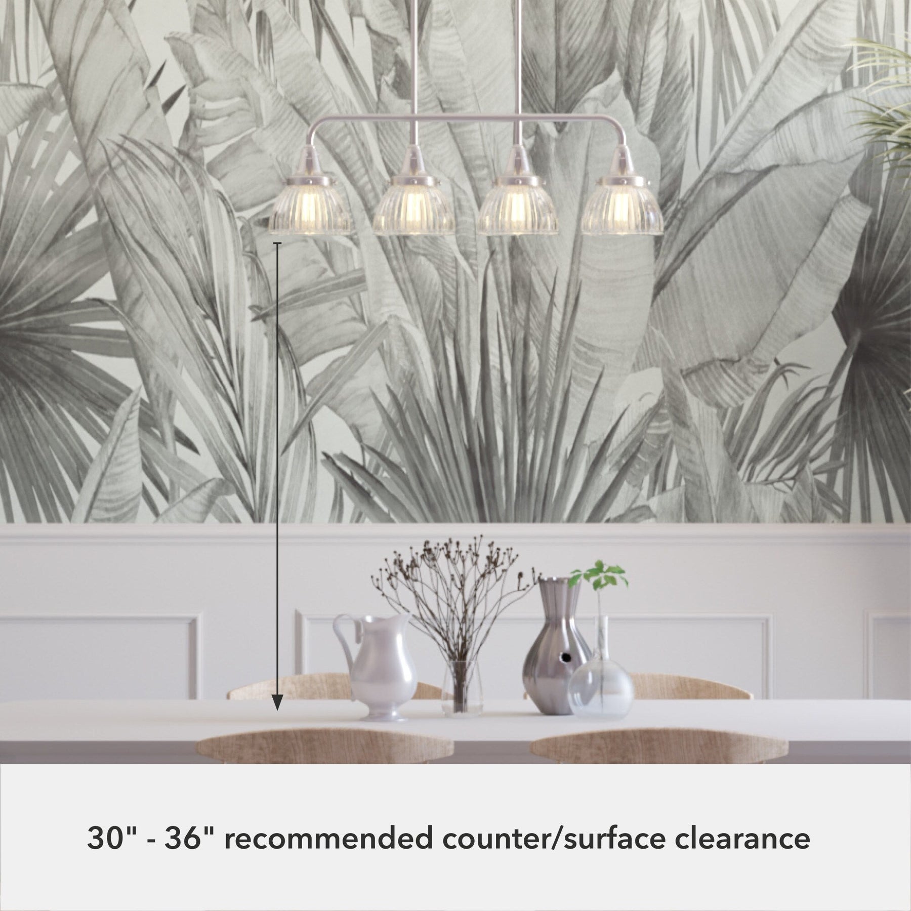 Illuminate your space with elegance and modern flair with the Hunter Cypress Grove 4-Light Brushed Nickel Chandelier. This transitional fixture combines strong lines with fluted glass to transform any kitchen, living room, or dining area into a luxuriously bright and inviting space.