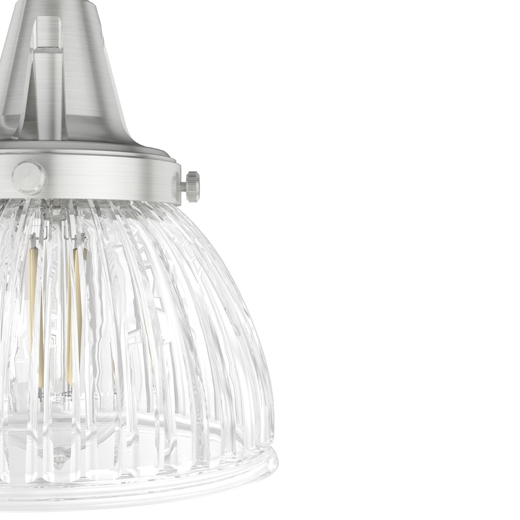 • Premium Design: Blends modern influences with transitional style, featuring a brushed nickel finish and clear holophane glass.