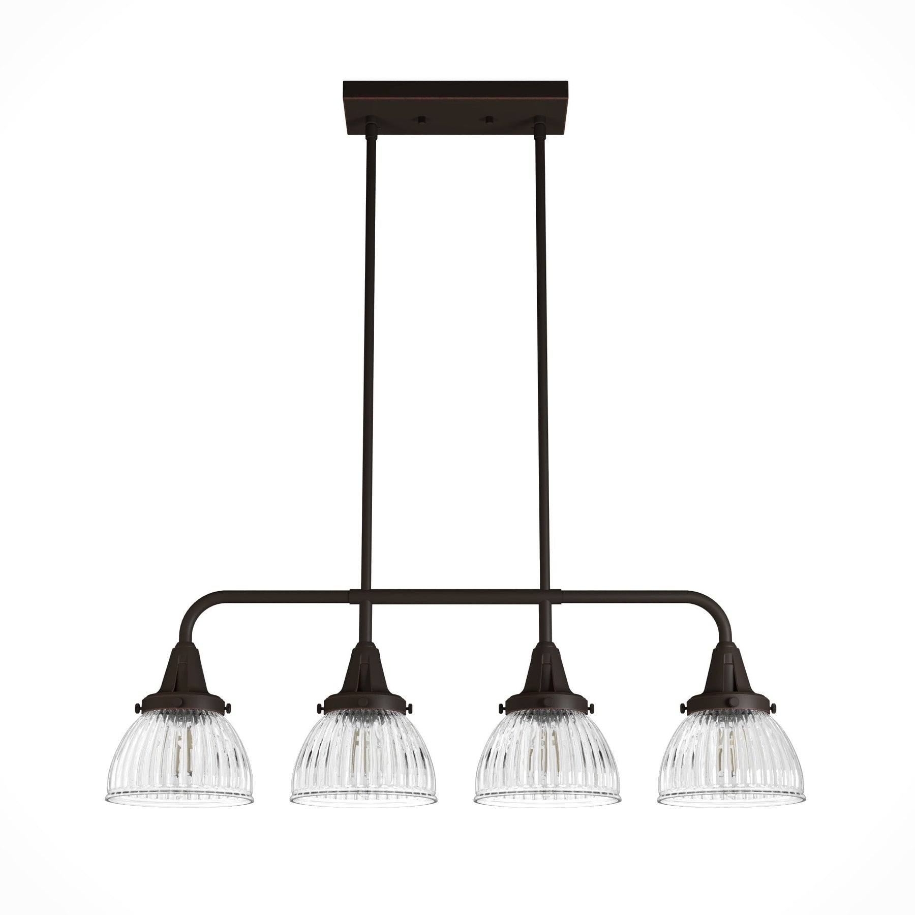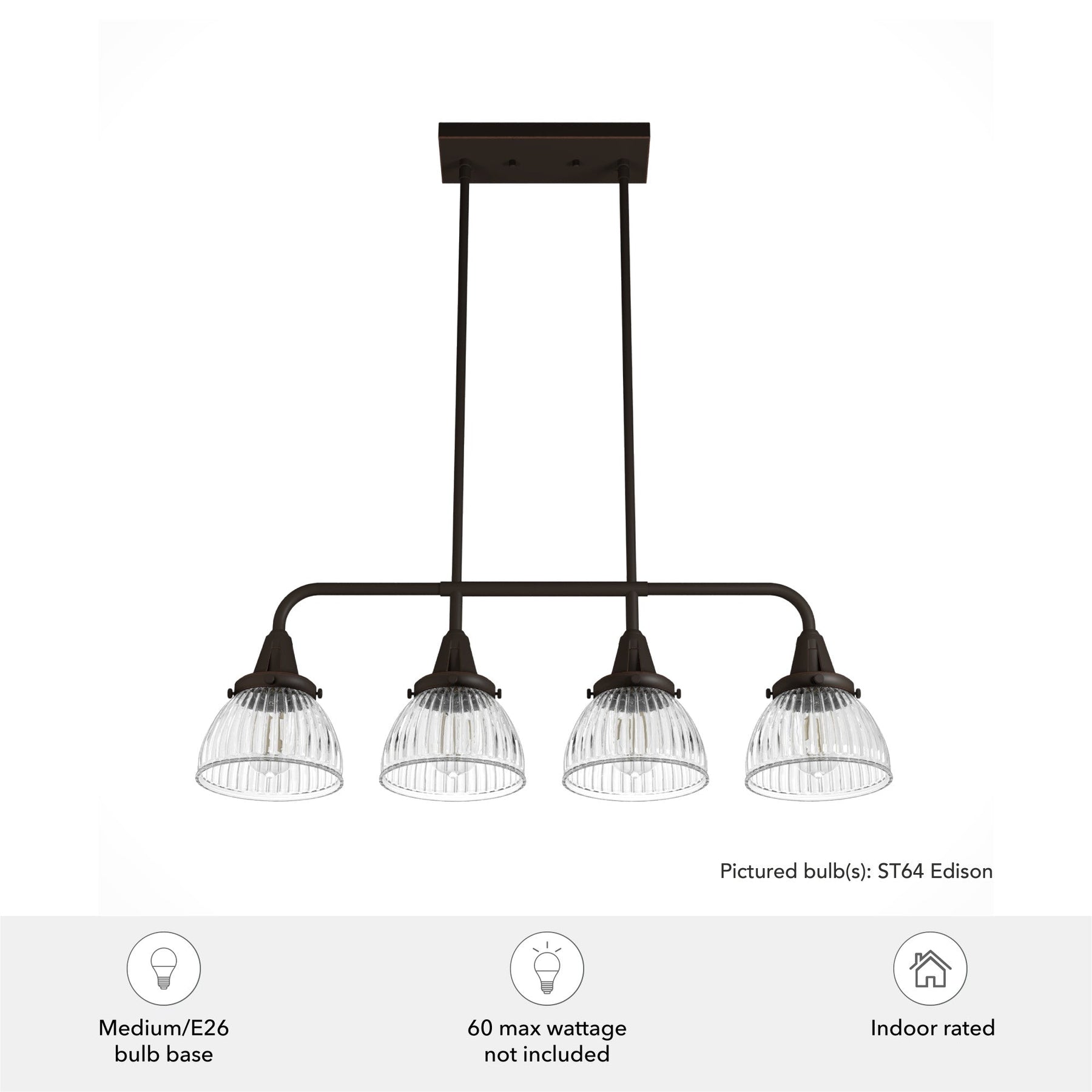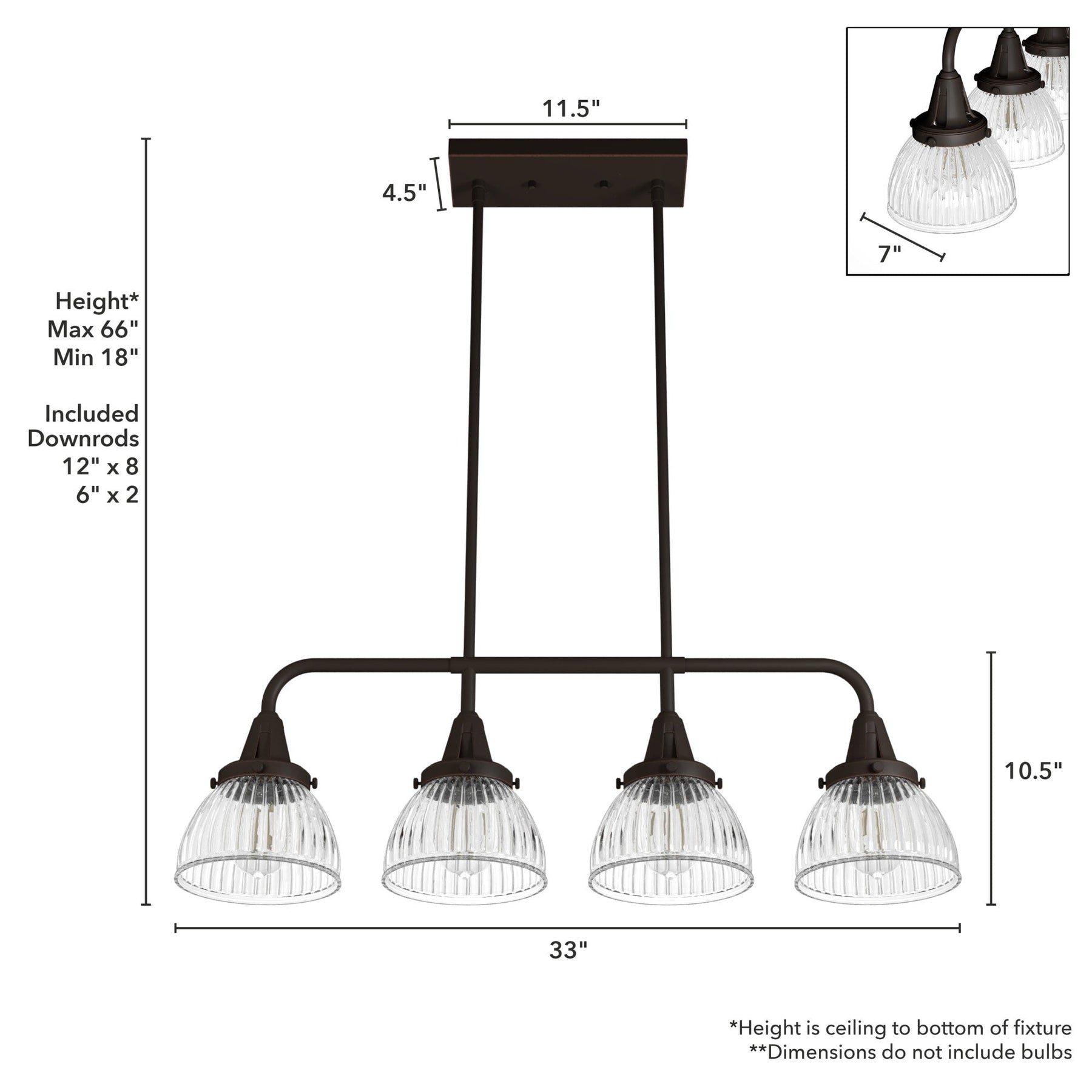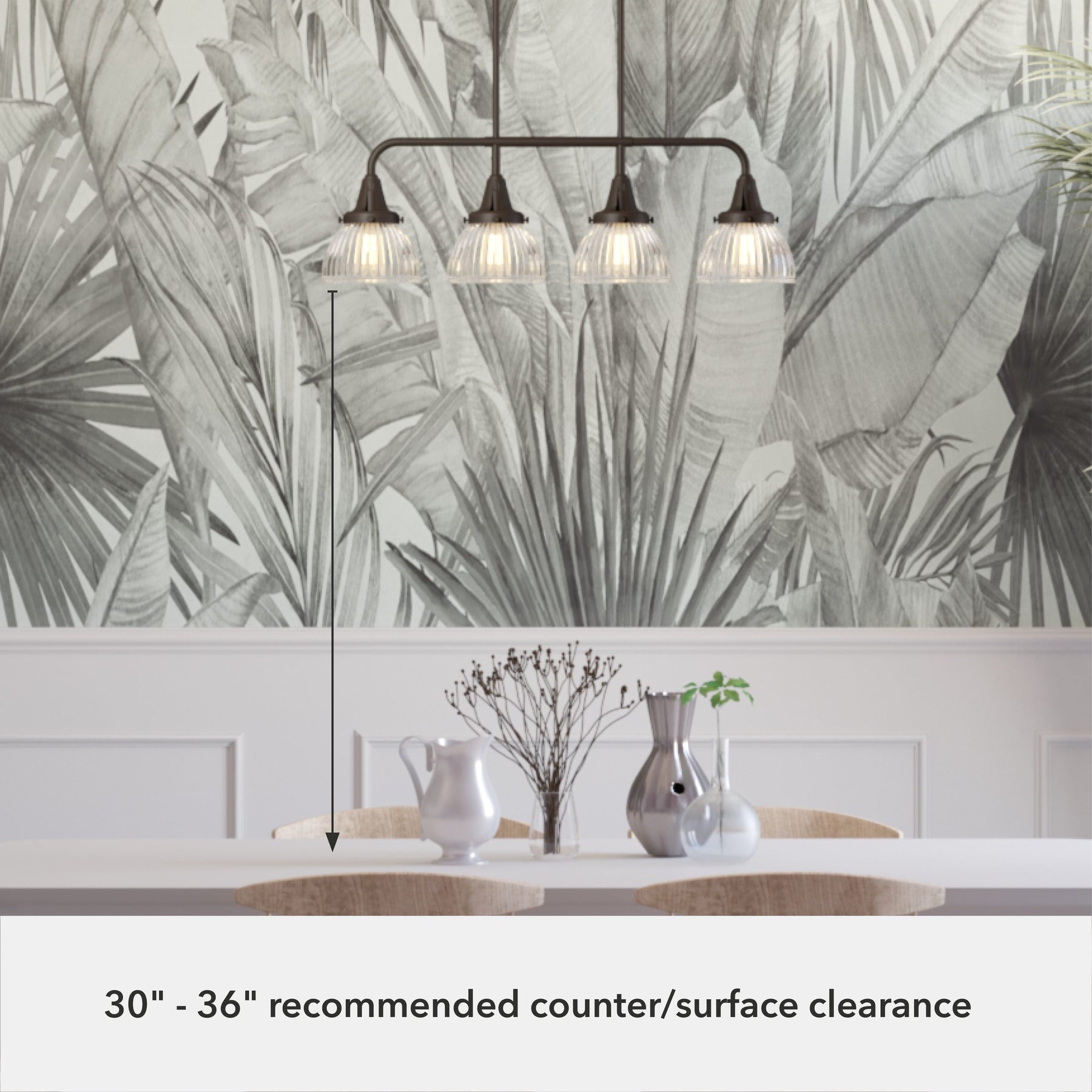 Illuminate your home with the exquisite Hunter Cypress Grove 4-Light Chandelier. This striking fixture features a transitional design with a matte copper finish, complemented by clear holophane glass. Perfect for adding a touch of luxury and sophistication to kitchens, dining areas, and living rooms.