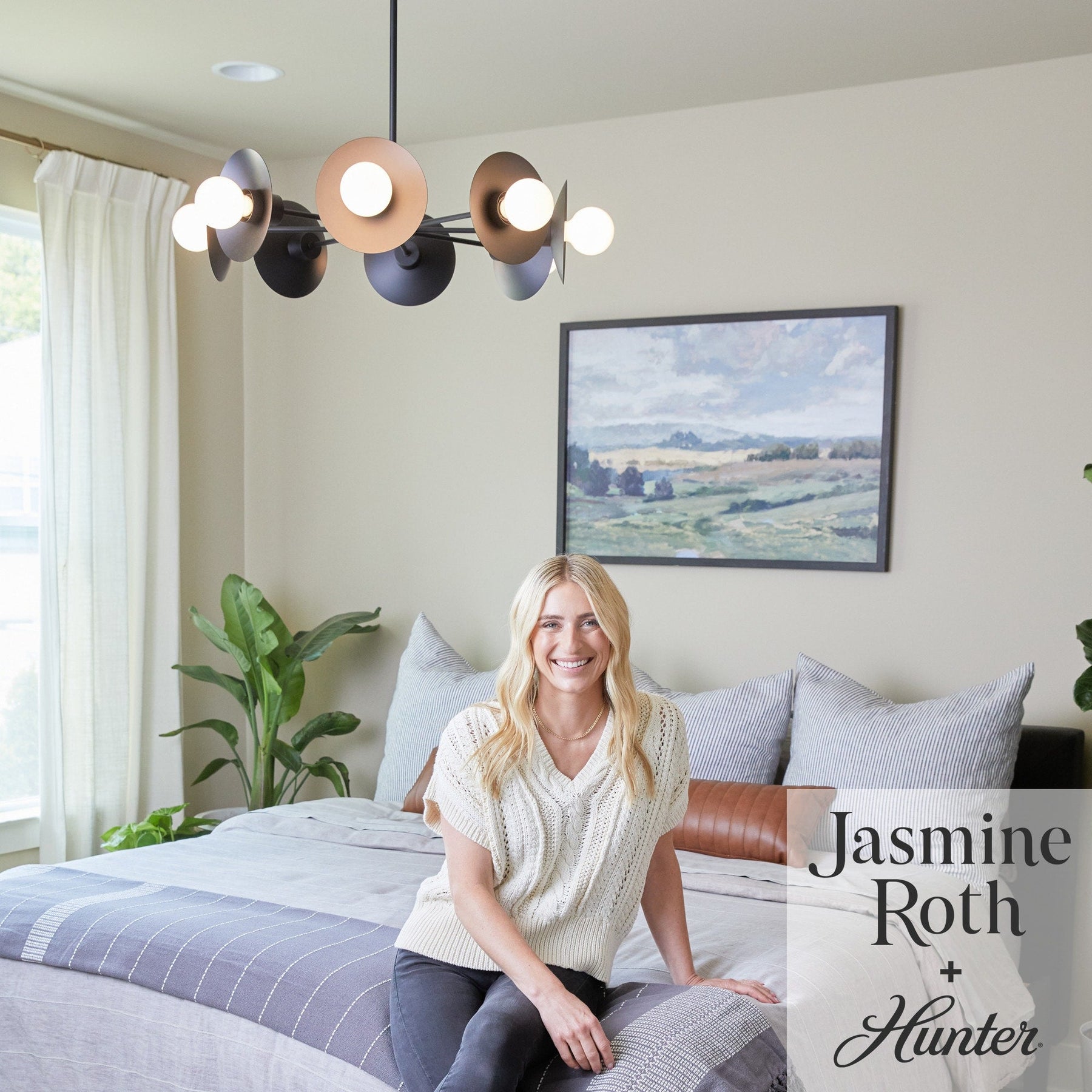 Elevate your space with the Hunter Fernando 8-Light Matte Black Chandelier, a striking fusion of modern design and the iconic Sputnik aesthetic. Its matte black finish adds sophisticated allure to kitchens, dining rooms, and foyers, seamlessly becoming a stylish focal point.