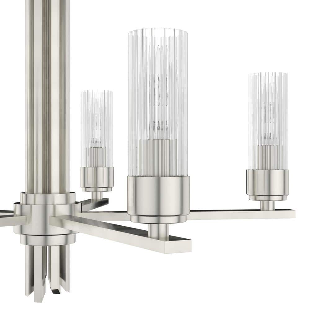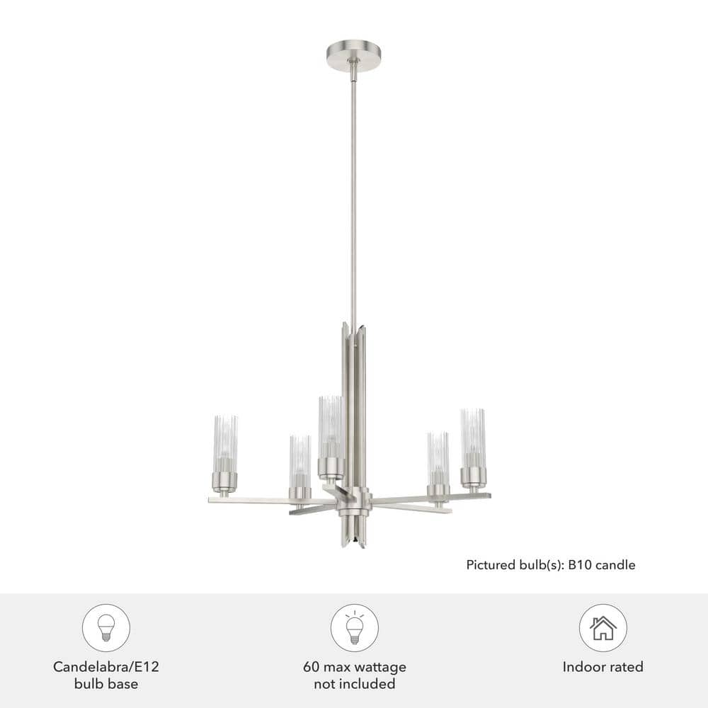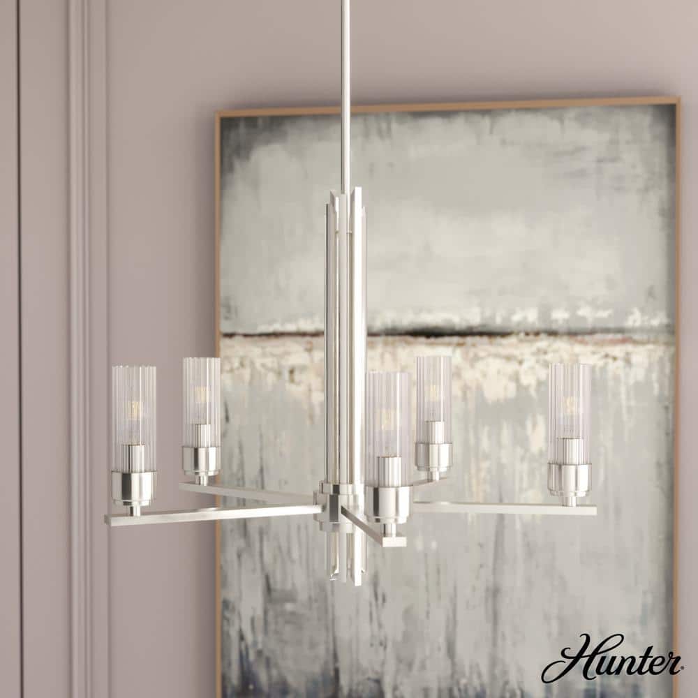 Hunter Gatz 5-Light Brushed Nickel Candlestick Chandelier with Ribbed Glass Shades