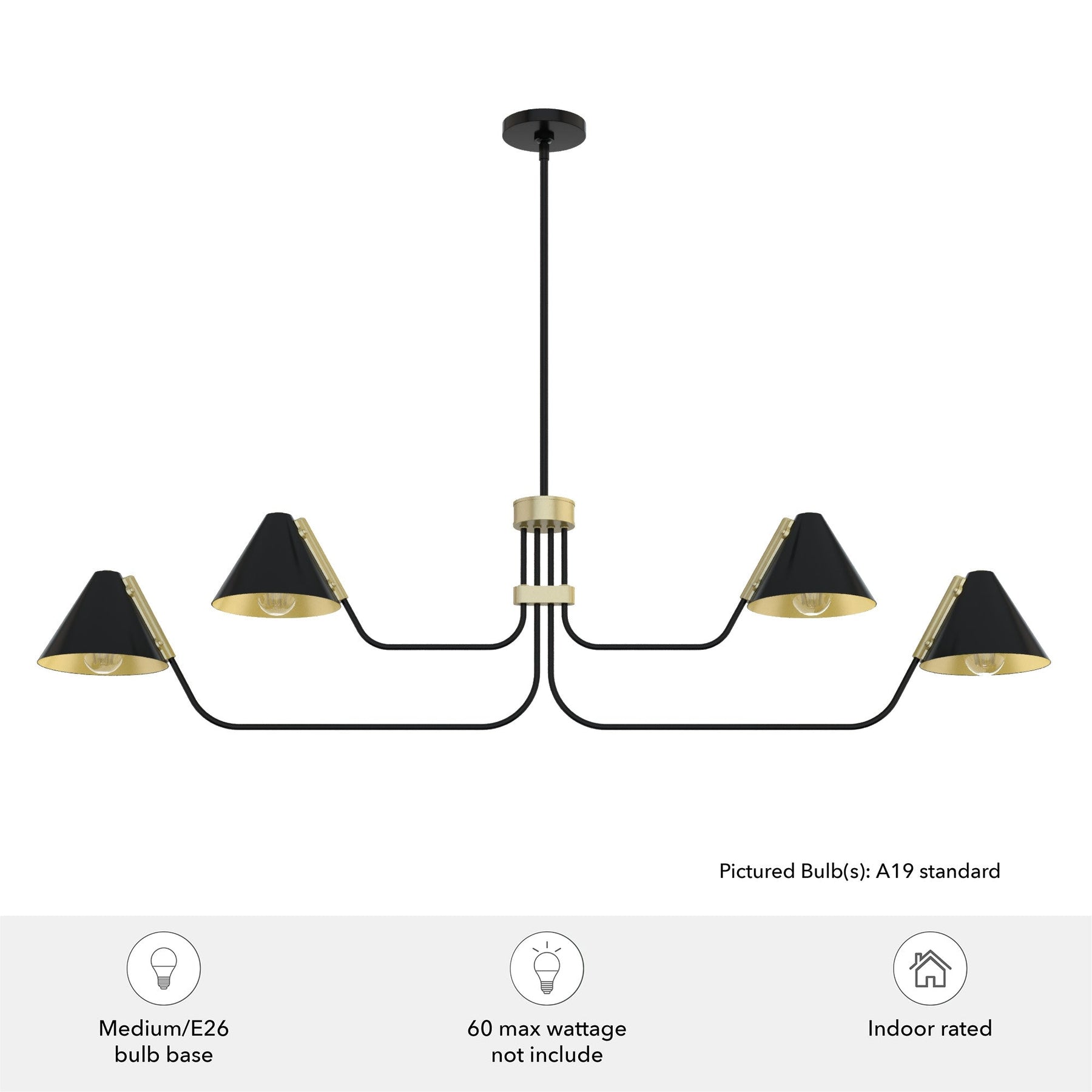 Emulate the grace and timeless allure of mid-century design with the Grove Isle 4-Light Chandelier. This piece transforms spaces into lively, modern marvels, with its delicate matte black finish that delicately complements any decor palette. The standout design of interconnected, slender arms and luminous shades add an air of modern sophistication. Consider suspending it above a richly grained dining table, or as a statement piece in your grand foyer to capture the attention it deserves. Indulge in the essential allure of luxurious living with this exquisite chandelier.