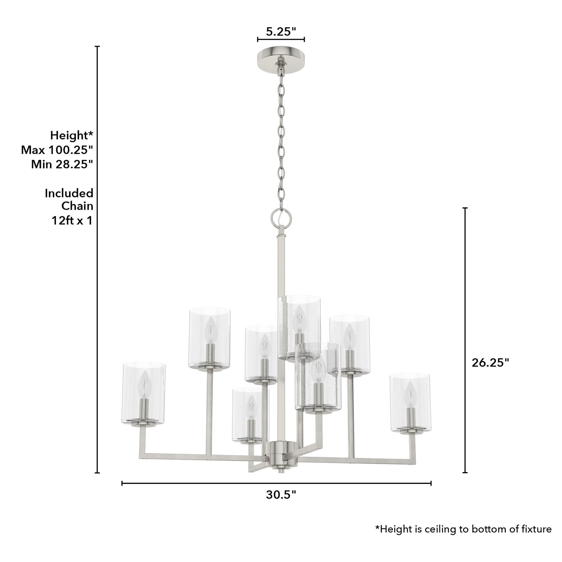 • Premium Design: Brushed nickel finish paired with exquisite seeded glass shade for a sophisticated look.