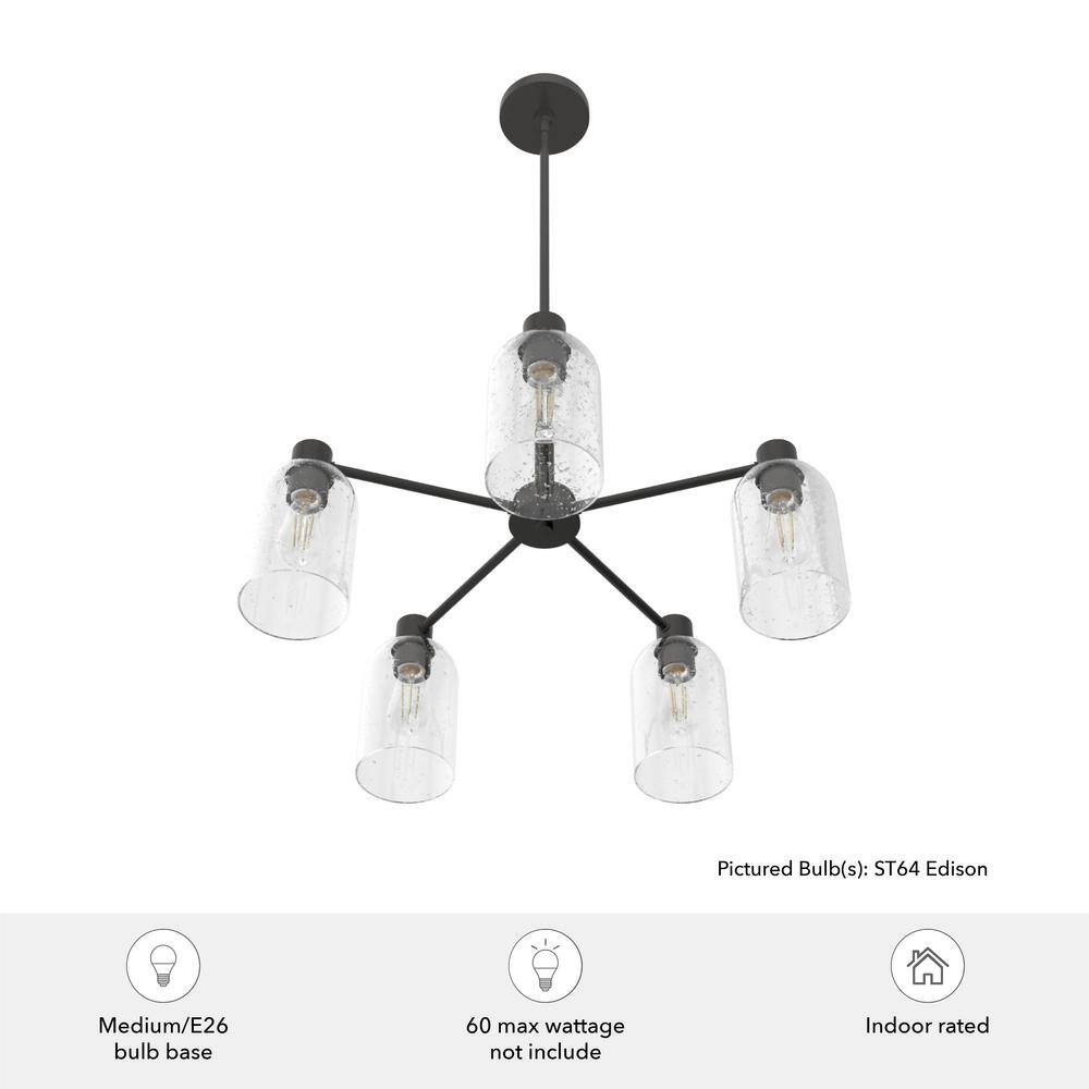 Illuminate your space with the Hunter Lochmeade 5-Light Chandelier, where modern sophistication meets timeless beauty. The noble bronze finish delicately complements the seeded glass shades, casting a warm and inviting glow throughout your dining room or kitchen. Envision this striking piece suspended over an elegant dining table or in a grand foyer, transforming the atmosphere with effortless style. Truly a masterpiece of design, its exquisite minimalist form is an essential companion for luxurious, modern living.