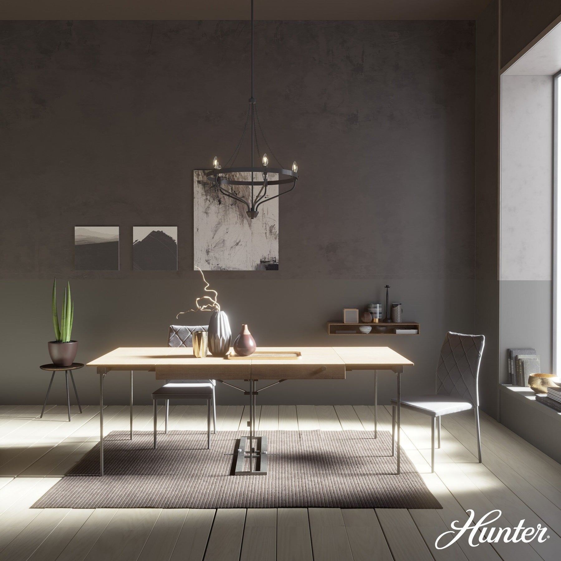 Illuminate your world with the Hunter Merlin Chandelier and create an industrially chic ambiance today!