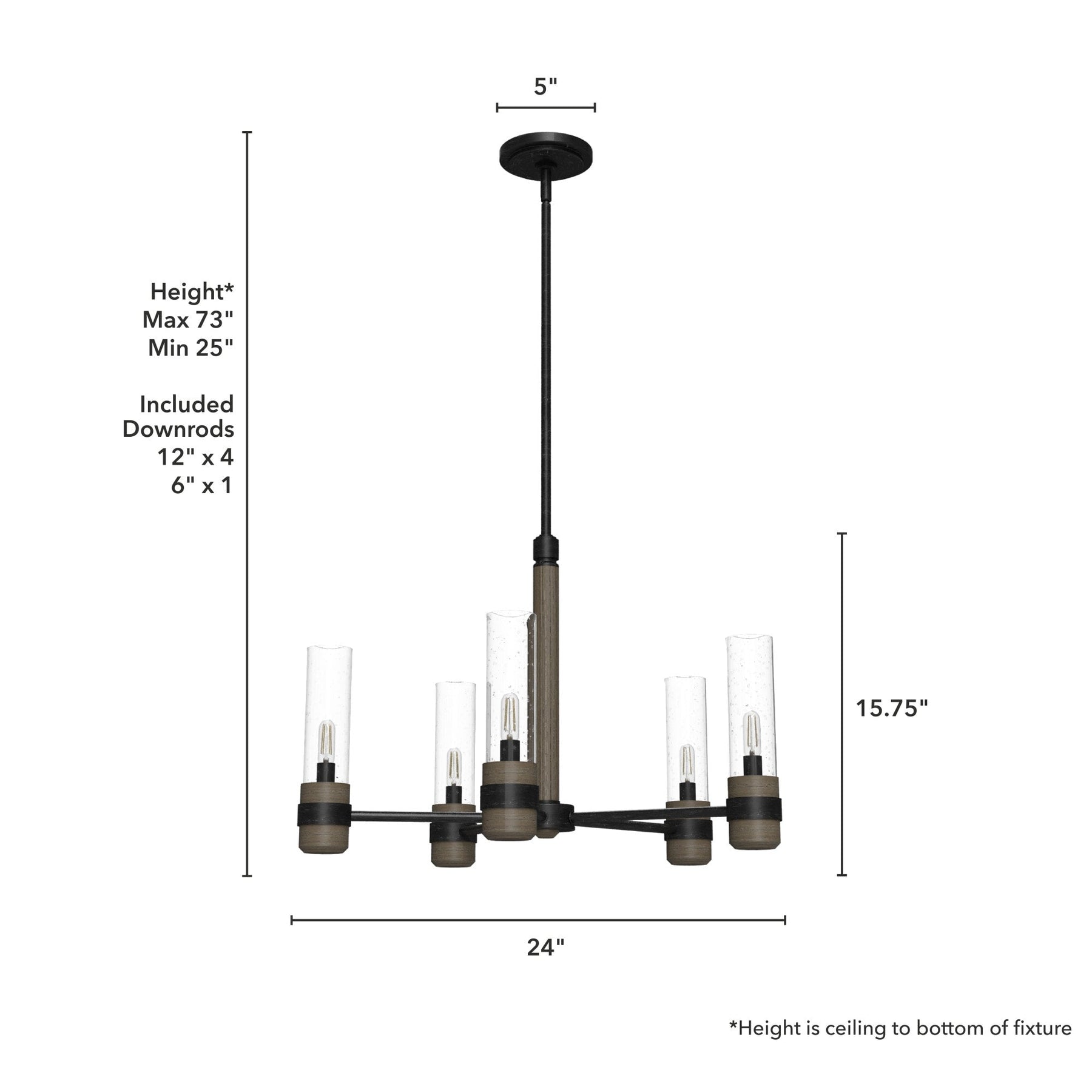 • Flexible Hanging: Includes both 6-inch and 12-inch downrods for adjustable hanging heights from 25 to 73 inches.